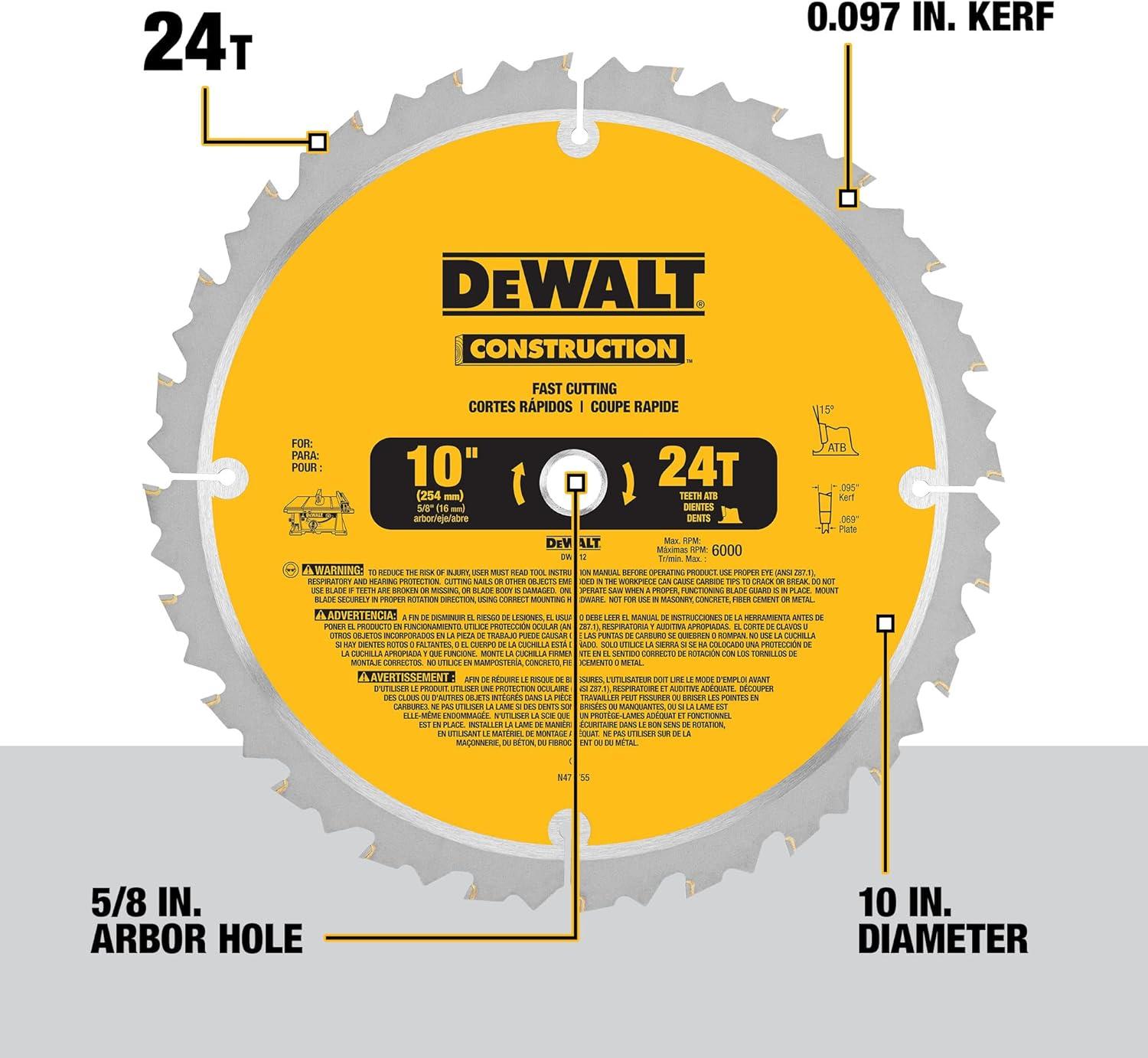 DEWALT 10-Inch Miter / Table Saw Blade, ATB, Thin Kerf, 5/8-Inch Arbor, 40-Tooth (DW3114)(24-Tooth)