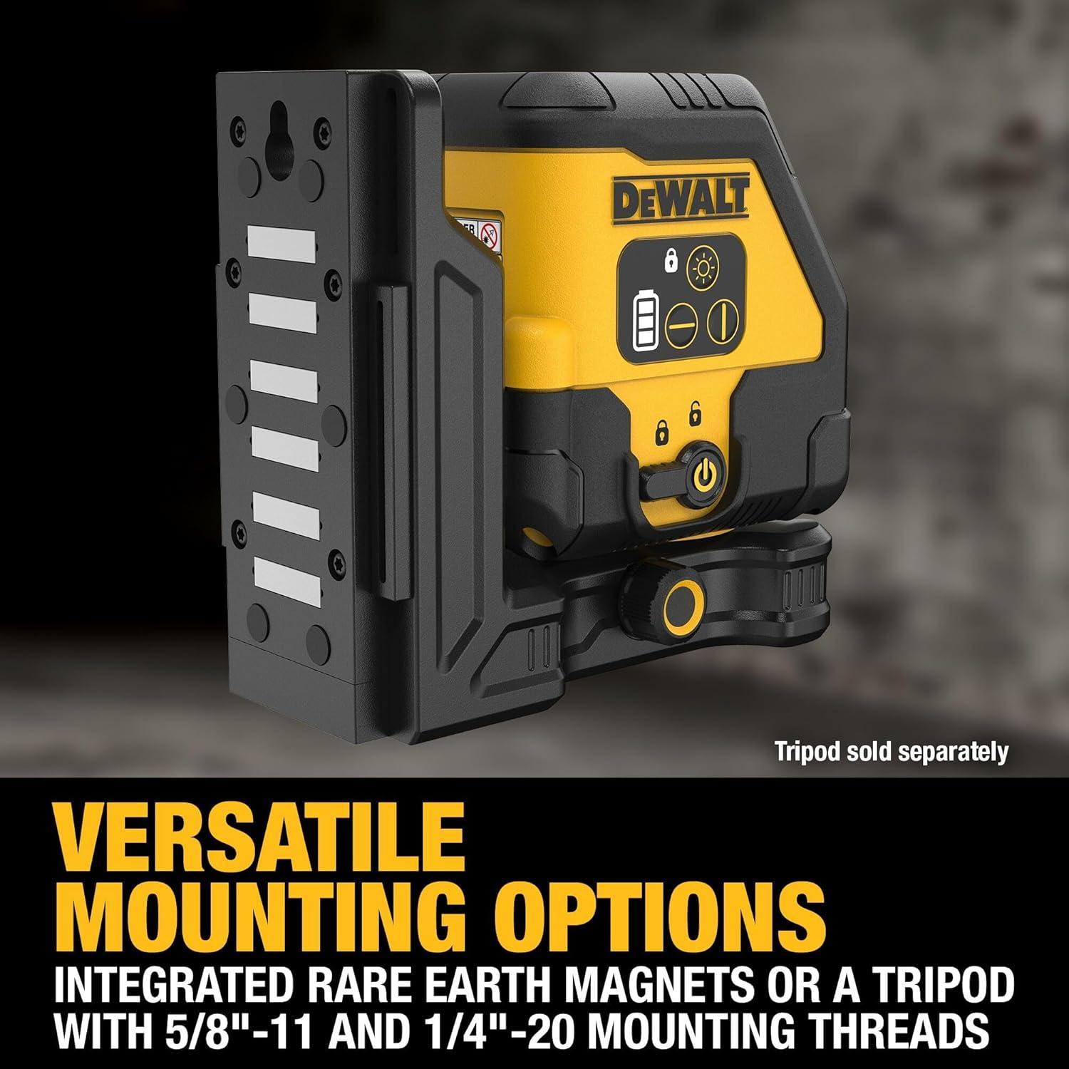 DEWALT green laser level has four times brighter green laser technology for visibility in long range interior applications and exterior visibility
