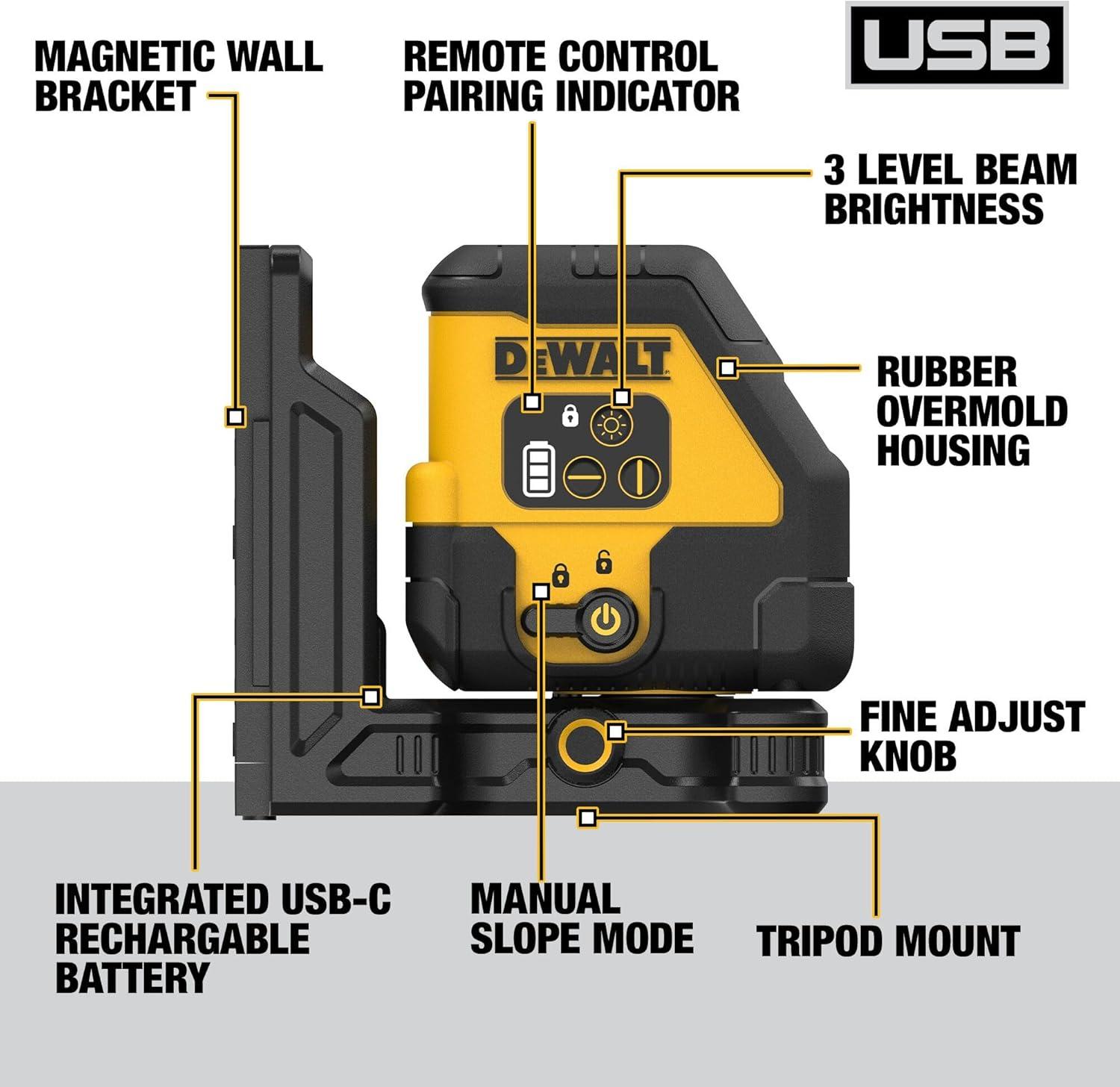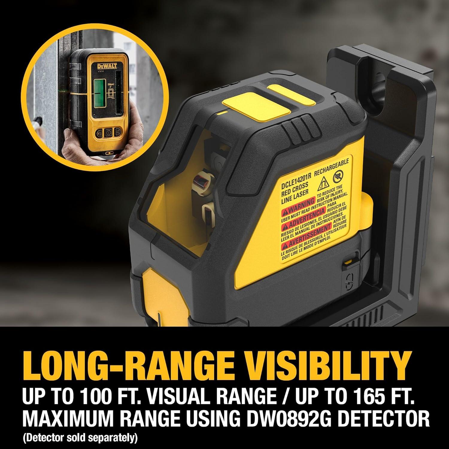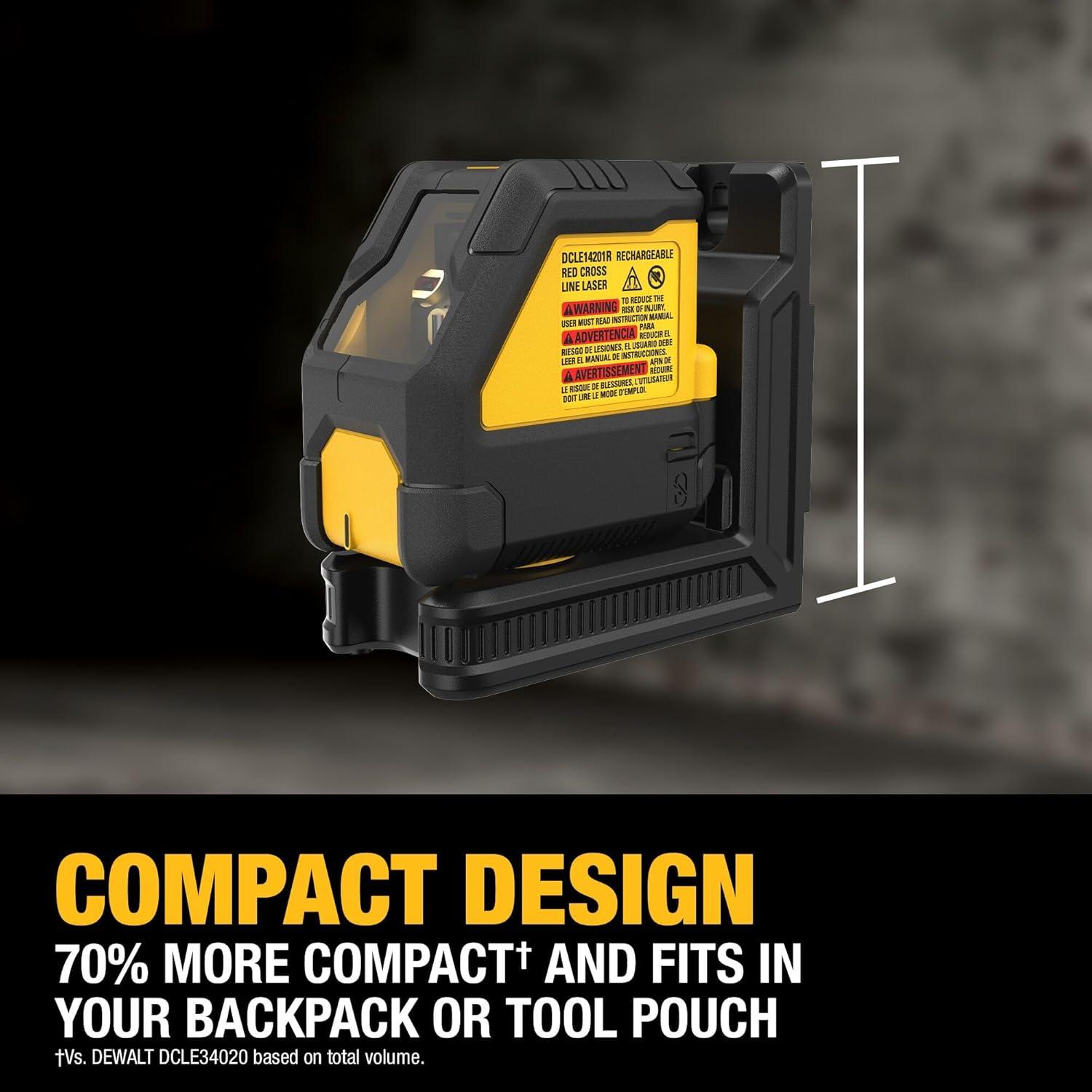 DEWALT laser level has 12V lithium-ion rechargeable power tool battery platform for extra long run time and the convenience of rechargeable power tool batteries