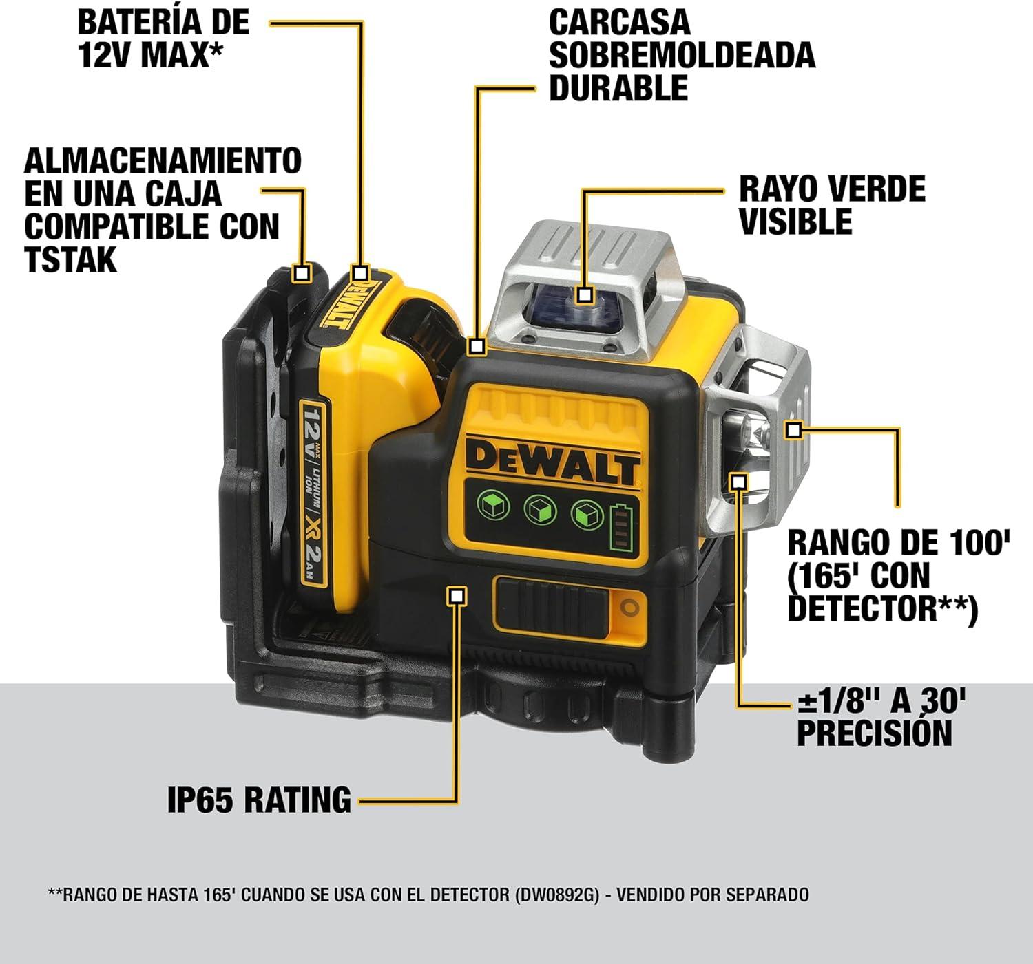 DEWALT 12V MAX Line Laser, 3 X 360, Green with Laser Measure Tool/Distance Meter, 100-Feet with Bluetooth (DW089LG & DW099S)