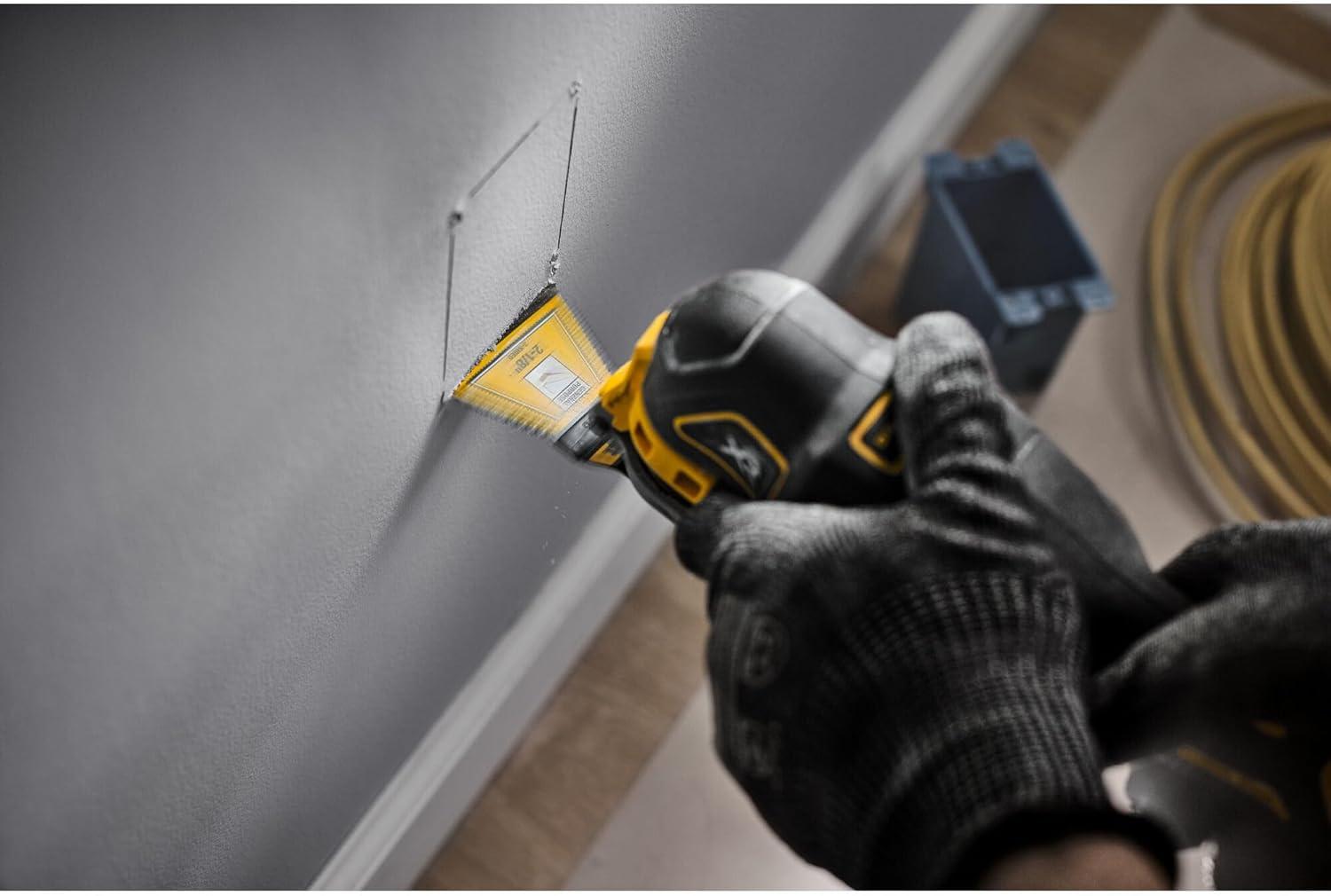 Take on challenging remodeling work with the DEWALT® General Purpose 3-Sided Oscillating Blade (DWA4283) that's engineered to deliver fast performance. Designed to make plunge and rip cuts in drywall and cut through wood with nails, this durable bi-metal blade features a proprietary 3-sided design. With a cutting width of 2 1/8 in. (54 mm), this blade is ideal for installing single gang electrical boxes. This 3-Sided Oscillating Blade offers tool-free blade changes for convenience and speed on tough jobsites.