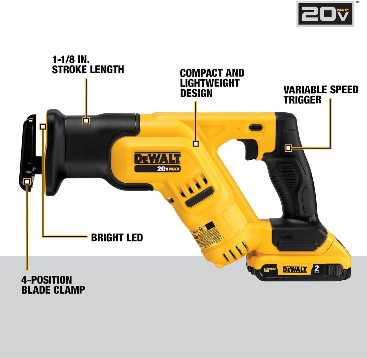 20V Max Lithium Ion Compact DEWALT Reciprocating Saw Kit (2.0Ah)