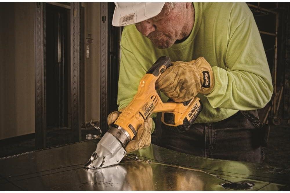 Cordless sheet metal shear allows user to take the tool to the workplace