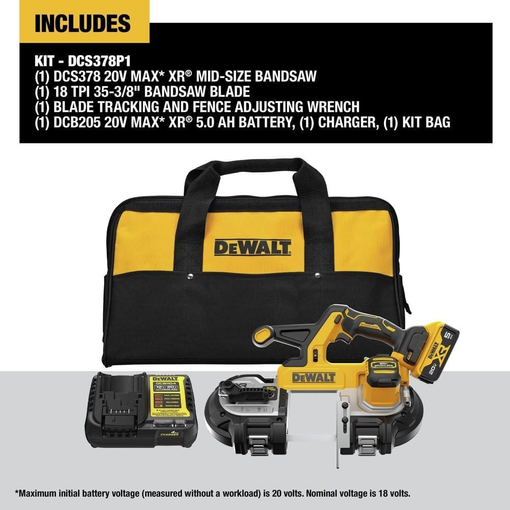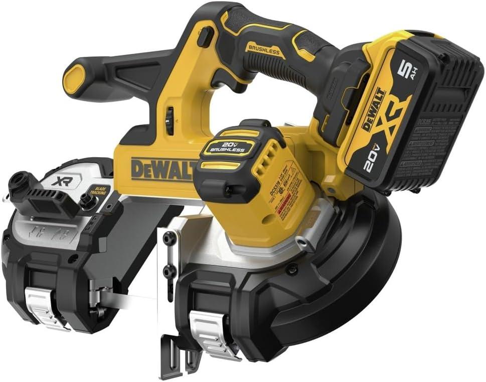 DEWALT 20V MAX XR Bandsaw, Brushless Motor, Portable and Cordless, 3-3/8 Inch Cut Capacity, 5Ah Battery and Charger Included (DCS378P1)(Kit with Battery)