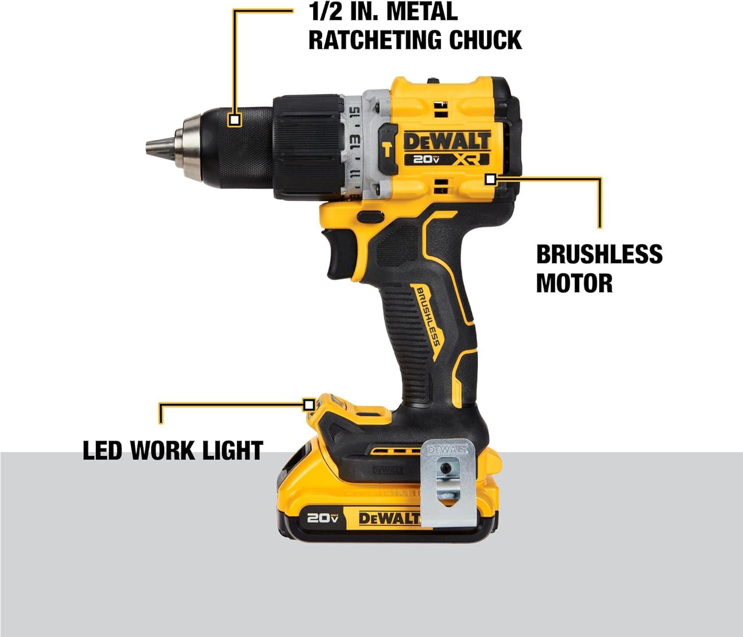 DEWALT 20V MAX* XR® Brushless Cordless 1/2 in. Hammer Drill/Driver Kit (DCD805D2), Yellow
