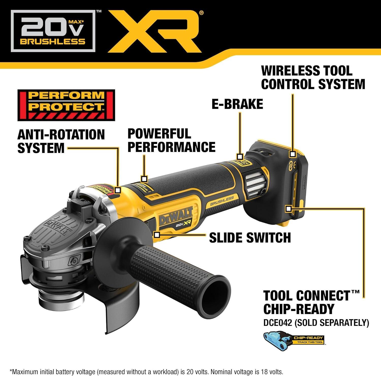 DEWALT 20V MAX XR Brushless Cordless 4-1/2 in. – 5 in. Variable Speed Slide Switch Grinder (Tool Only) (DCG411VSB)