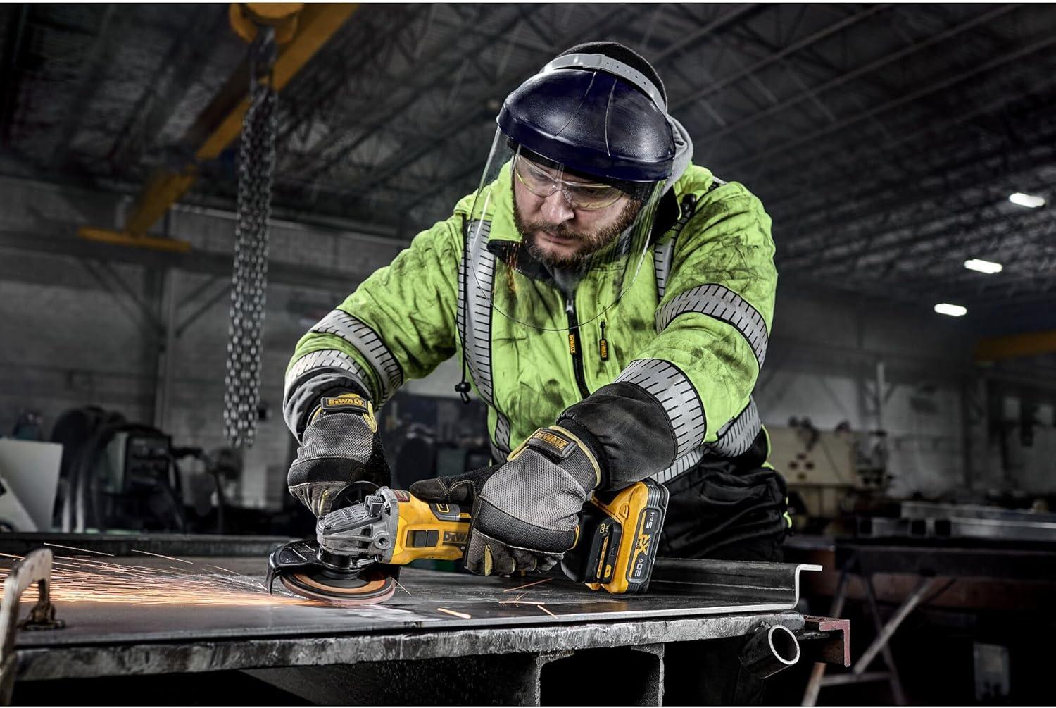 Complete a variety of jobs with the 20V MAX* XR 4.5 in. – 5 in. Variable Speed Slide Switch Grinder (battery and charger sold separately). As part of our most powerful line of 20V MAX* Angle Grinders**, this tool allows the user to adjust wheel speed to match the needs of a wide range of applications. This grinder delivers power for tough jobs and is equipped with PERFORM & PROTECT features like the ANTI-ROTATION System. Battery and charger sold separately.