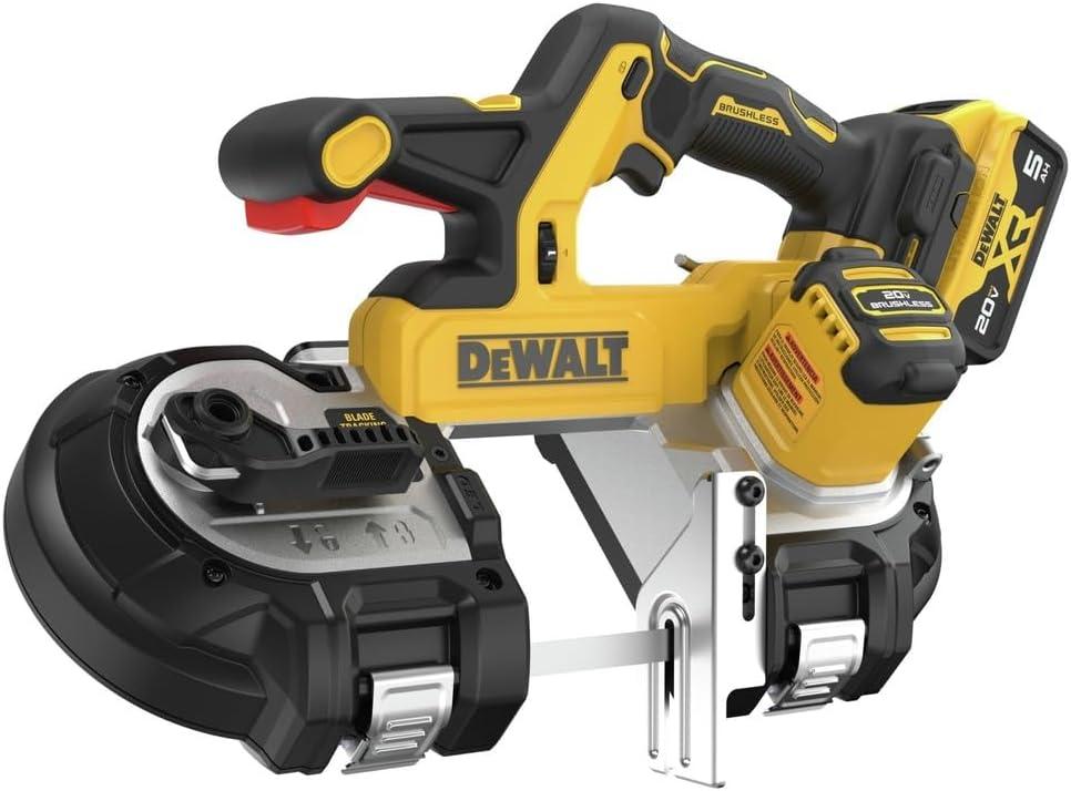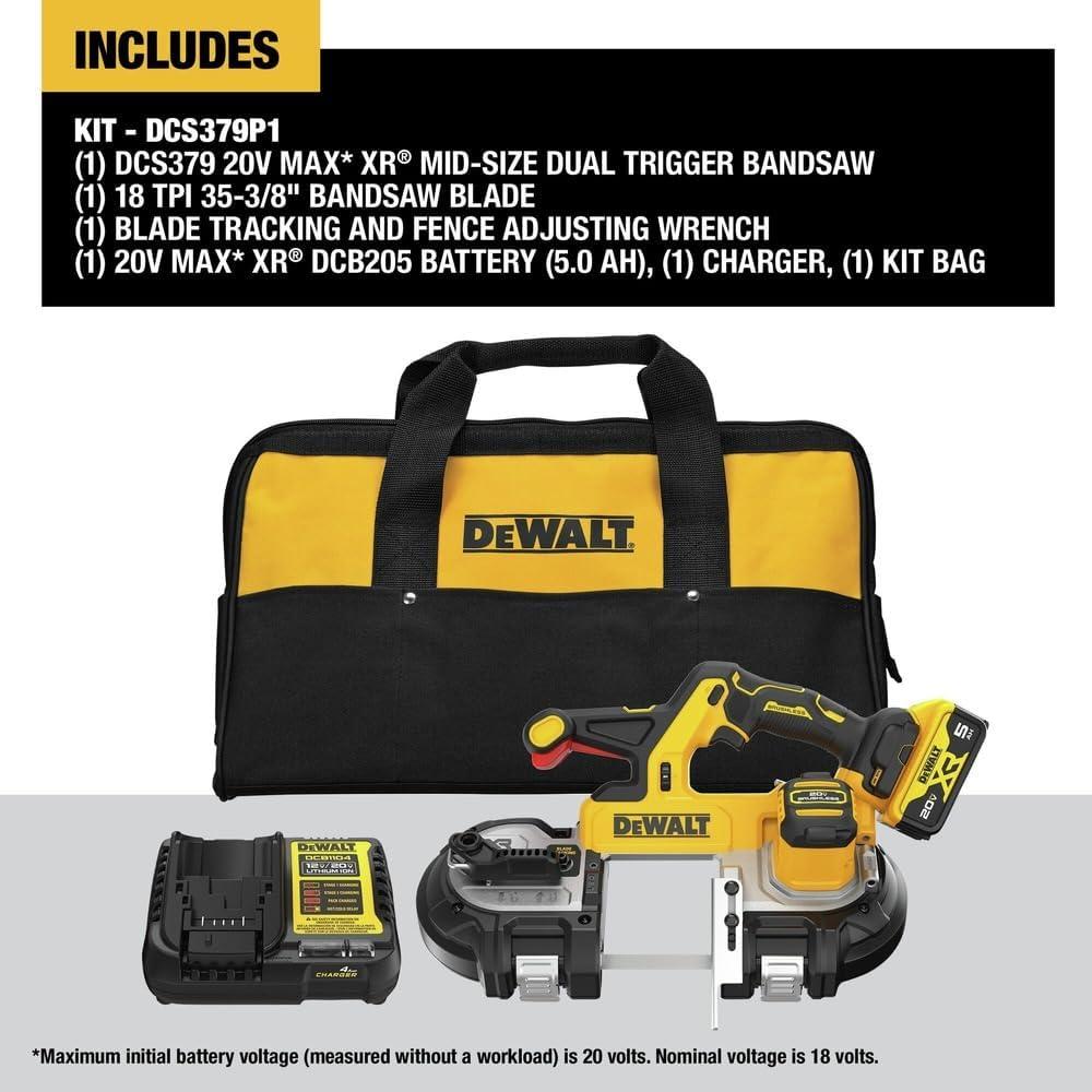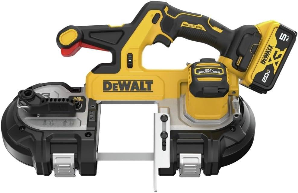 DEWALT 20V MAX XR Dual Trigger Bandsaw, Brushless Motor, Portable and Cordless, 3-3/8 Inch Cut Capacity, 5Ah Battery and Charger Included (DCS379P1)(Kit with Battery)