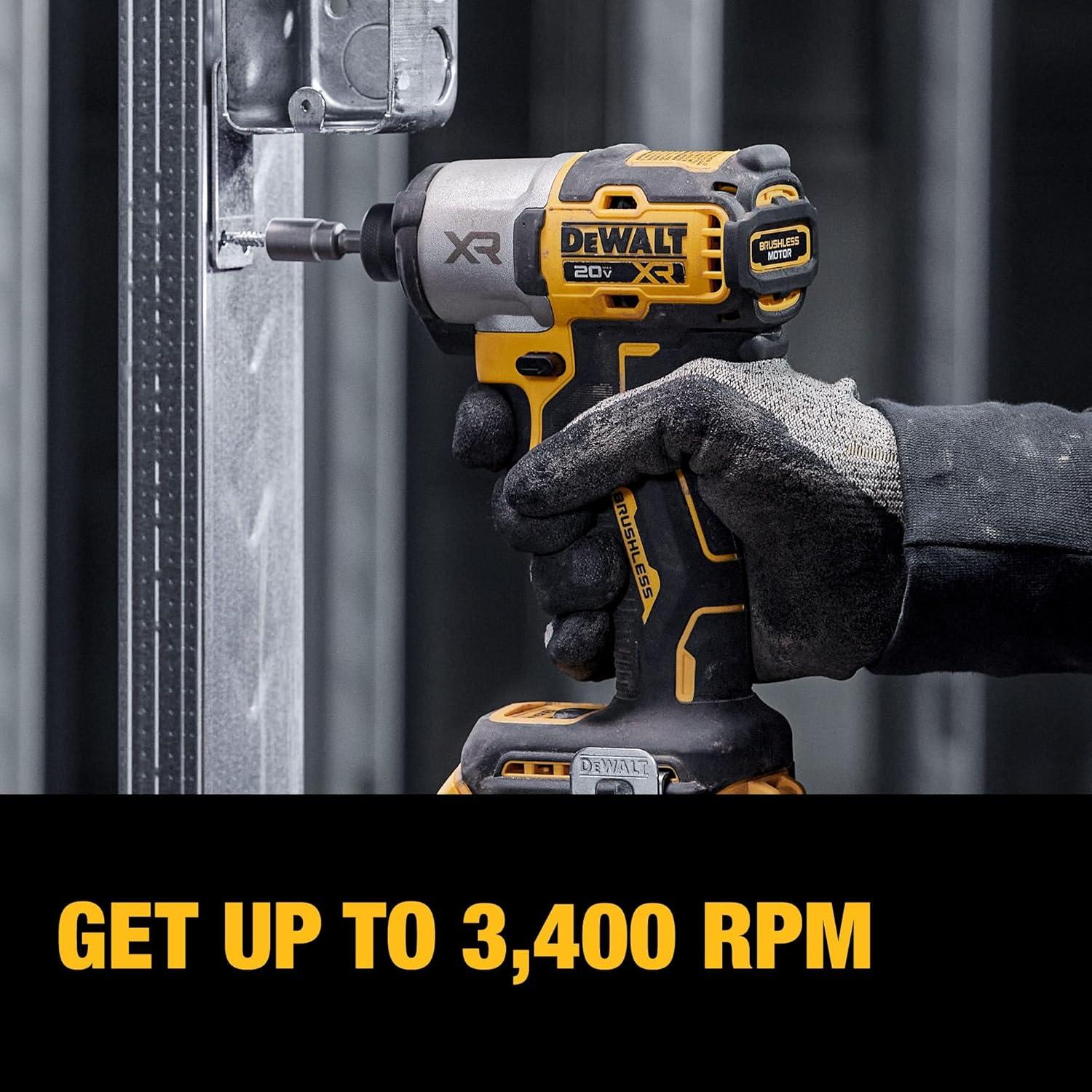 DCF845: Brushless motor delivers 1825 in-lbs of torque and 3400 RPM to drive large diameter screws.