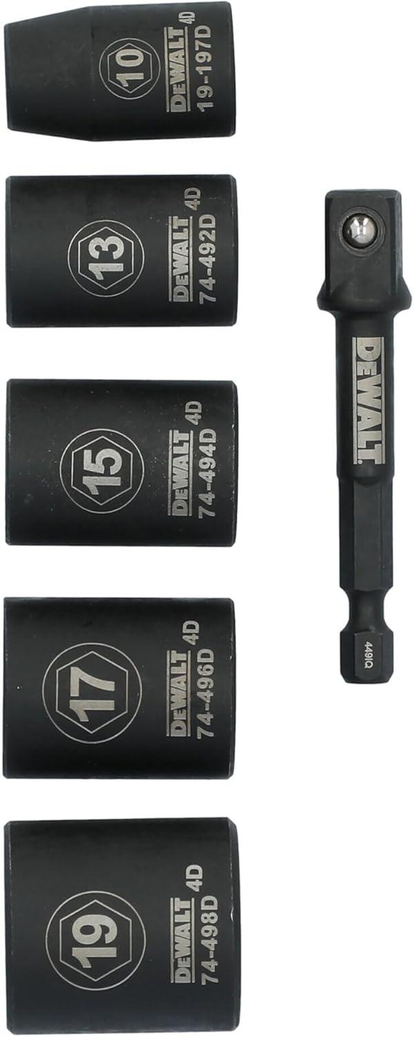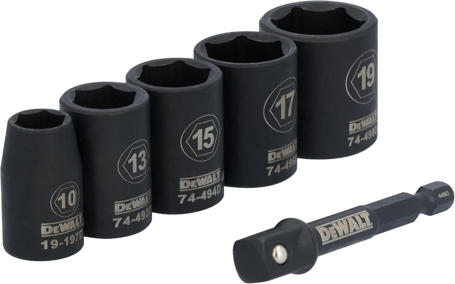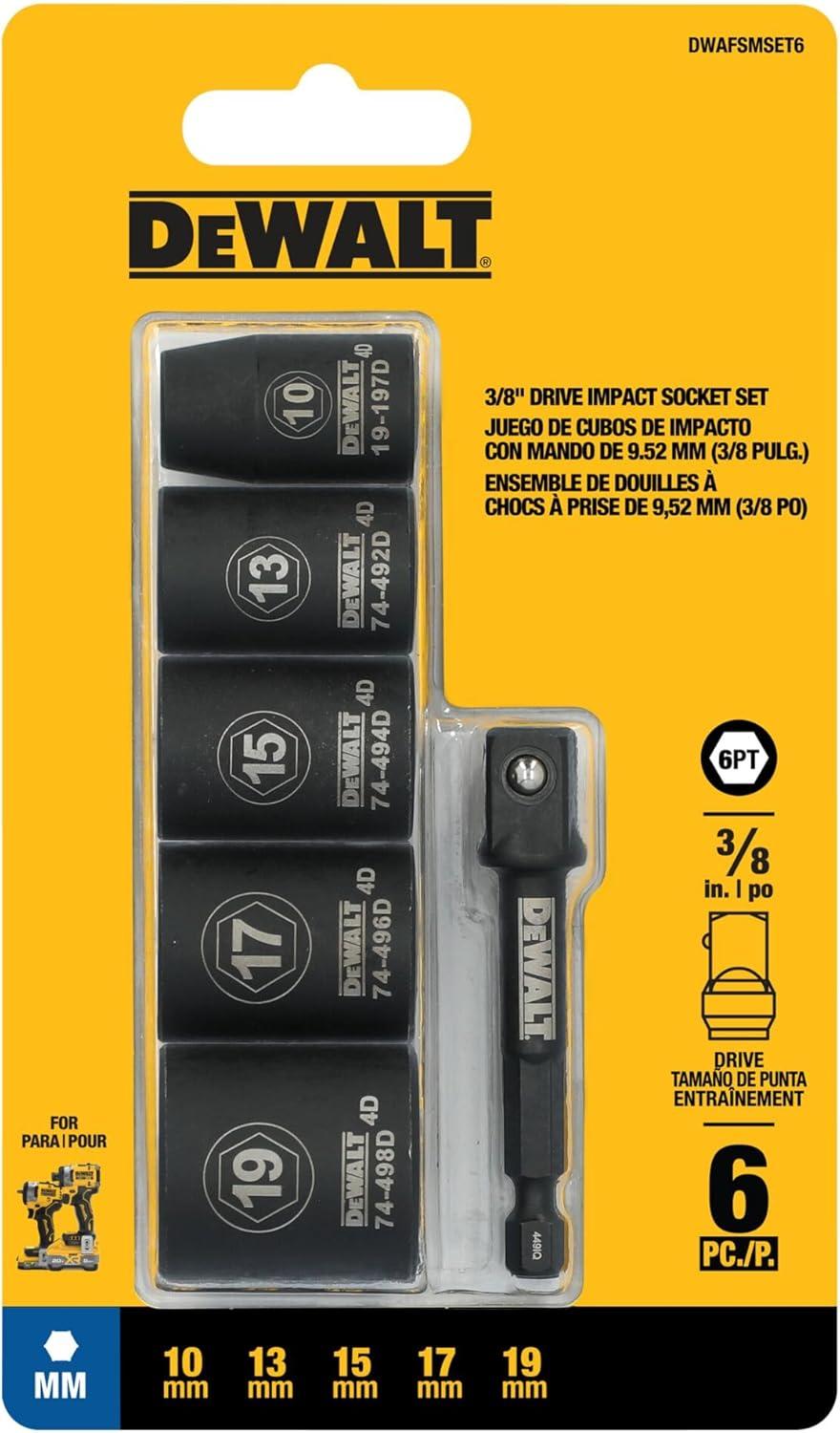 DEWALT 3/8 Socket Set, 6 Pcs Metric Impact Socket Set, 6 point, 10 mm to 19 mm, Includes 1/4 inch Adapter, for Cordless and Corded Impact Drivers and Wrenches (DWAFSMSET6)(6 Pc Metric)