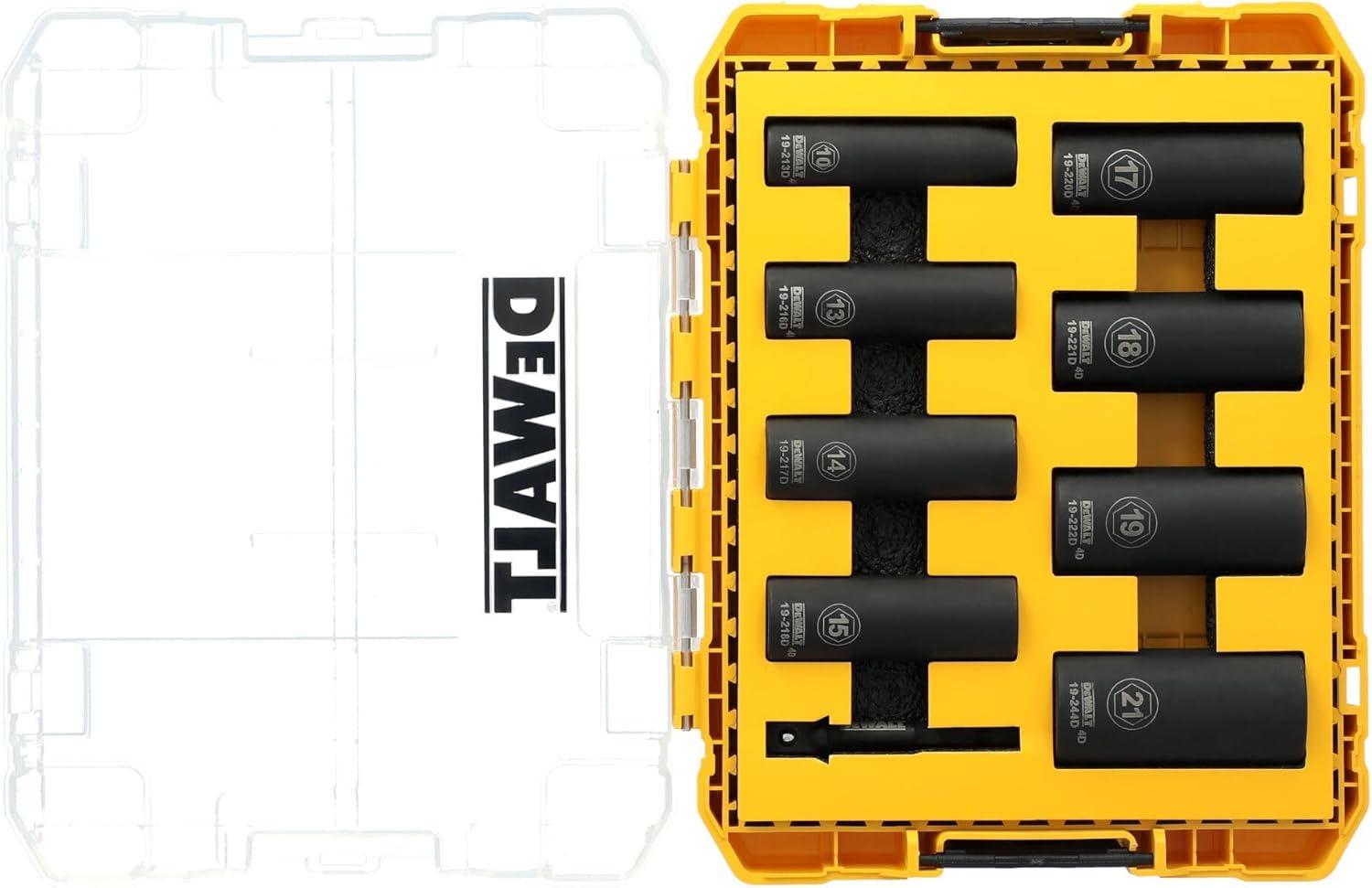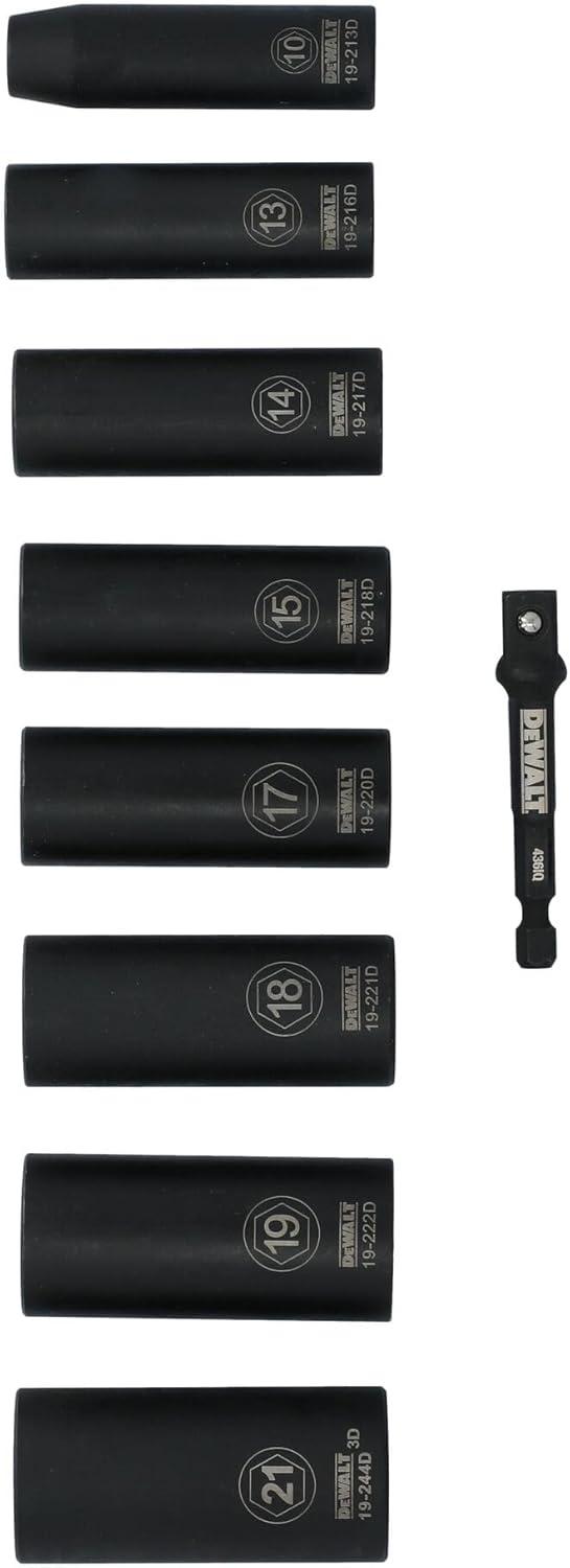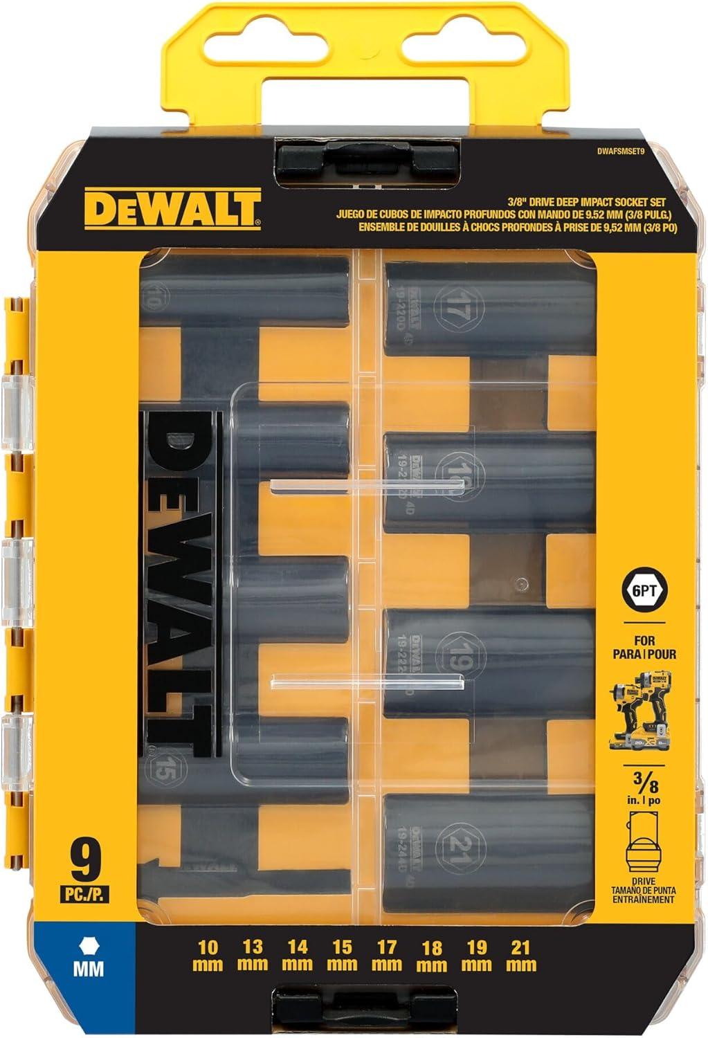 DEWALT 3/8 Socket Set, 6 Pcs Metric Impact Socket Set, 6 point, 10 mm to 19 mm, Includes 1/4 inch Adapter, for Cordless and Corded Impact Drivers and Wrenches (DWAFSMSET6)(9 Pc Metric)