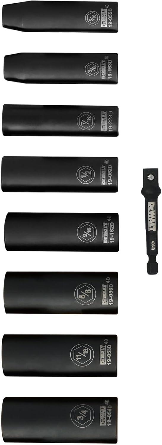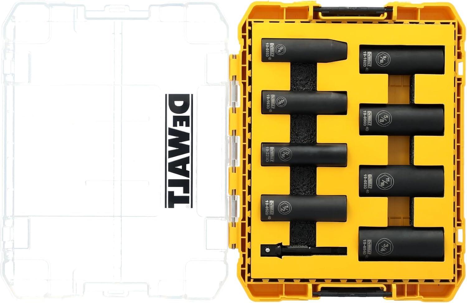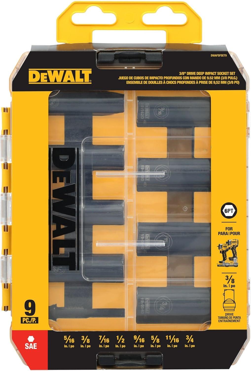 DEWALT 3/8 Socket Set, 6 Pcs Metric Impact Socket Set, 6 point, 10 mm to 19 mm, Includes 1/4 inch Adapter, for Cordless and Corded Impact Drivers and Wrenches (DWAFSMSET6)(9 Pc SAE)
