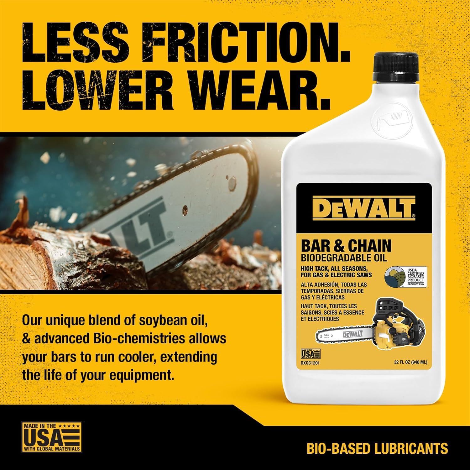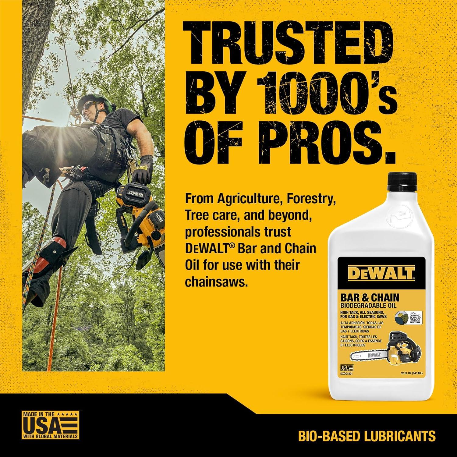 DEWALT – Biodegradable Bar & Chain Oil – Green, Eco-Friendly, Non-Toxic Professional Bar & Chainsaw Lubricant – Ultraclean All-Season Oil for Gas, Electric Saw, and Pole Saw, 16 oz(32 oz (Case of 12))