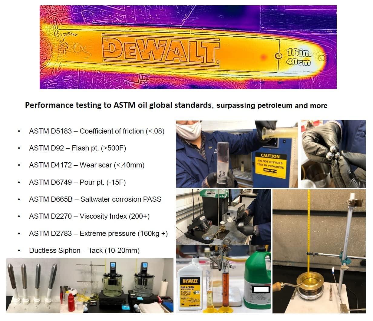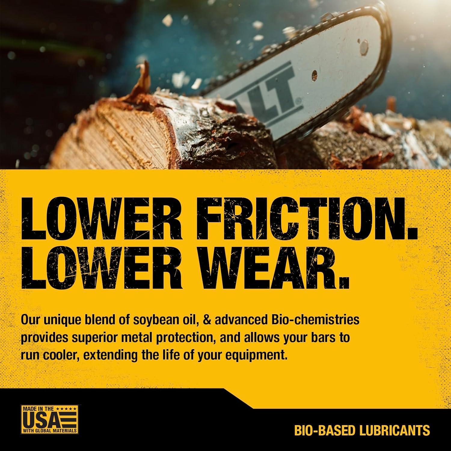 Proven Performance & American-Made Quality: Tested by treecare and industry experts, this ultraclean DEWALT lubricant delivers exceptional thermal control and durability. Made in the USA, it features up to a 300% higher viscosity index than conventional petroleum chain oils, ensuring superior lubrication and reliable performance in all conditions.