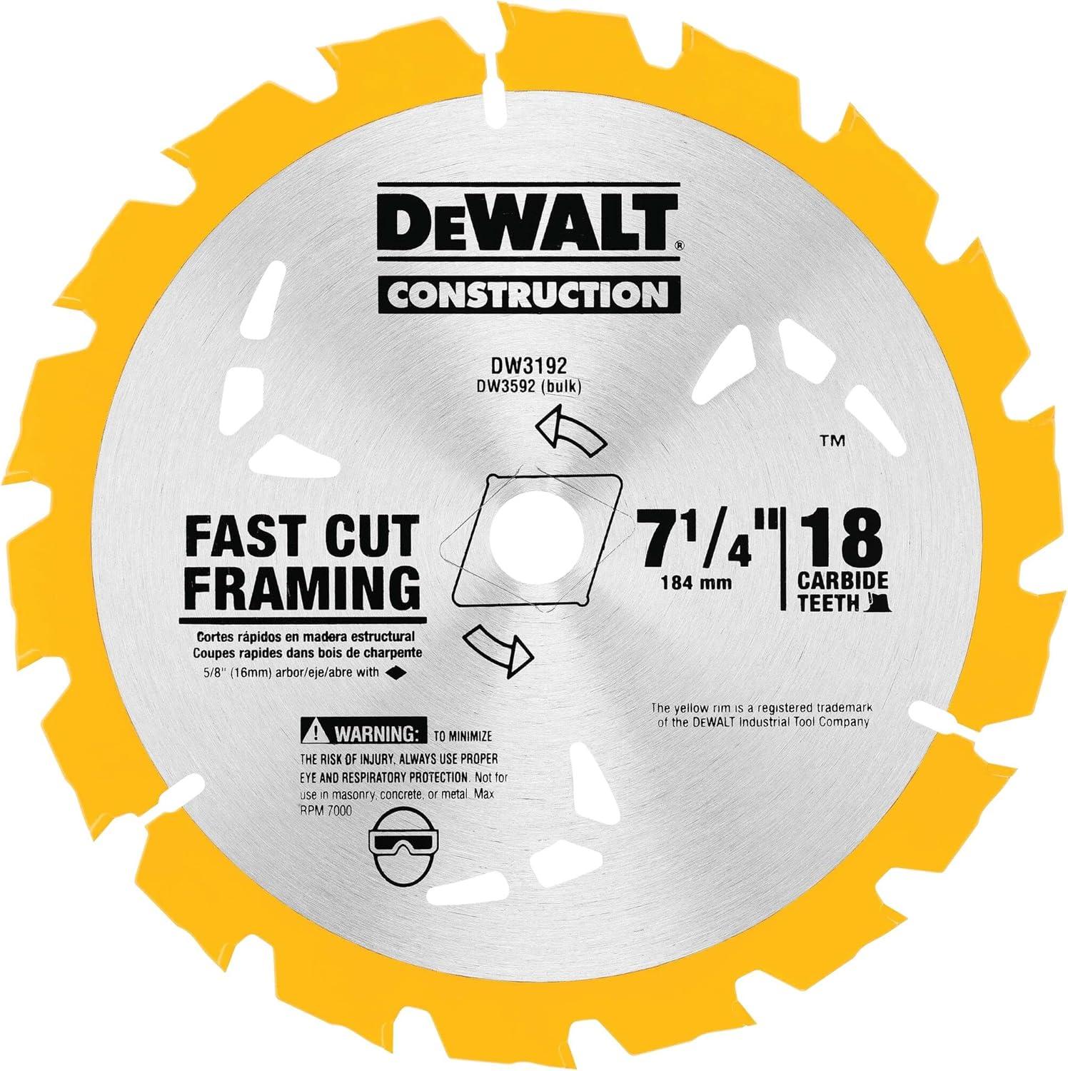 DEWALT Circular Saw Blade, 7 1/4 Inch, 18 Tooth, Wood Cutting (DW3192)(One Size)