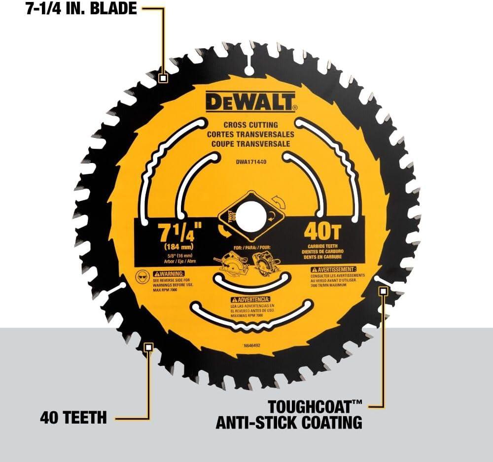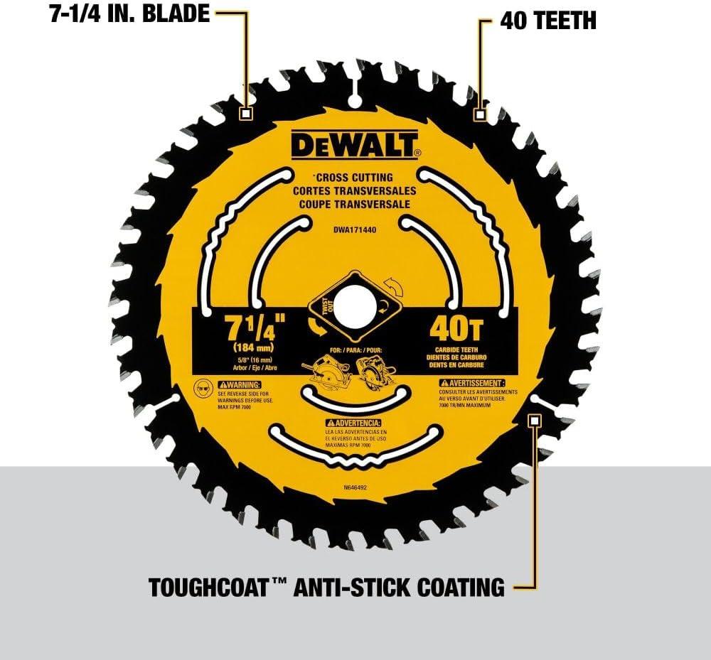 DEWALT Circular Saw Blade, 7 1/4 Inch, 40 Tooth, Wood Cutting (DWA171440)(New)