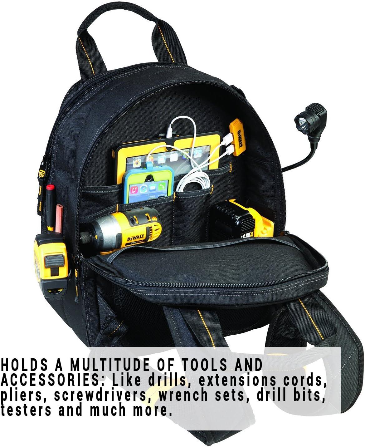 DEWALT DGCL33 33-Pocket Lighted USB Charging Tool Backpack , Yellow(Yellow Black)