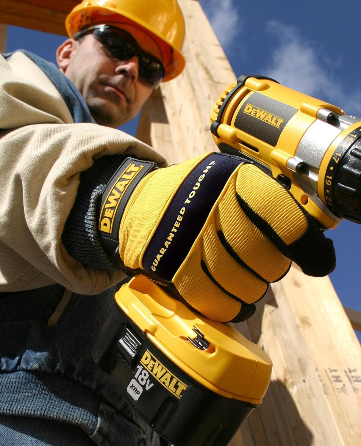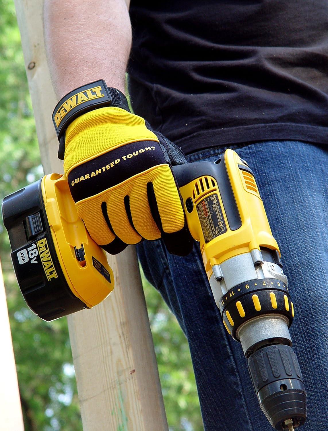 Dewalt DPG20L All Purpose Synthetic Leather Palm Spandex Back Velcro Wrist Work Glove, Large, Yellow/ Black