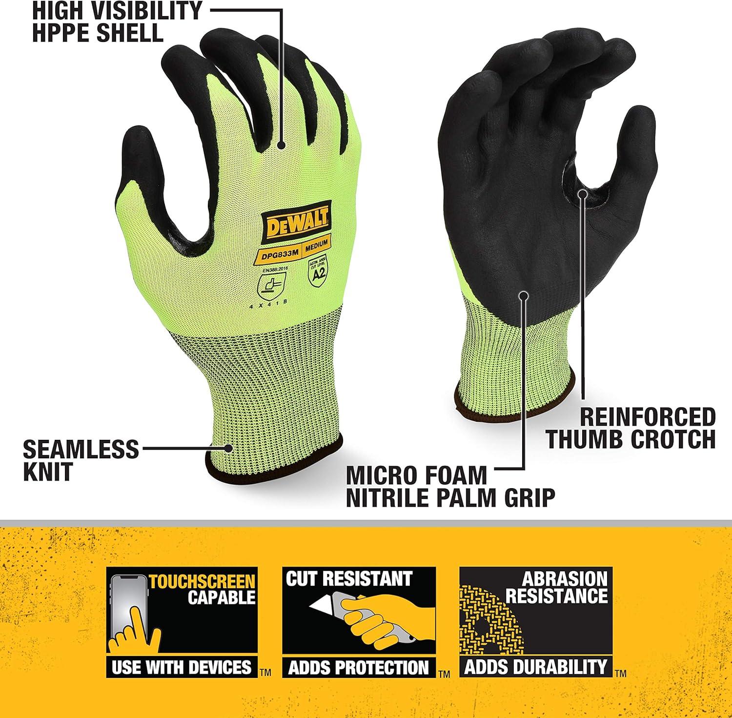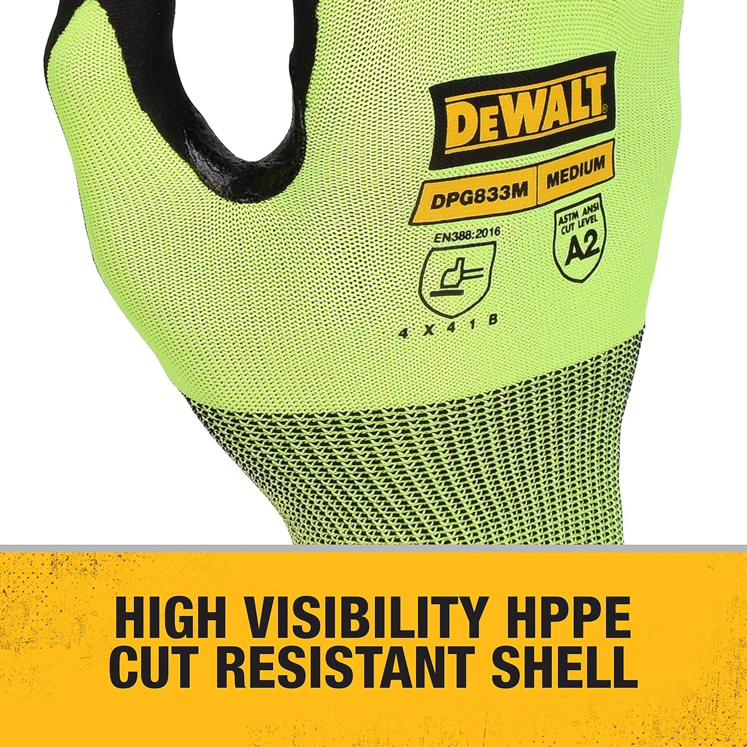 Dewalt DPG833 Hi-Vis HPPE Cut Touchscreen Glove – S(Small)