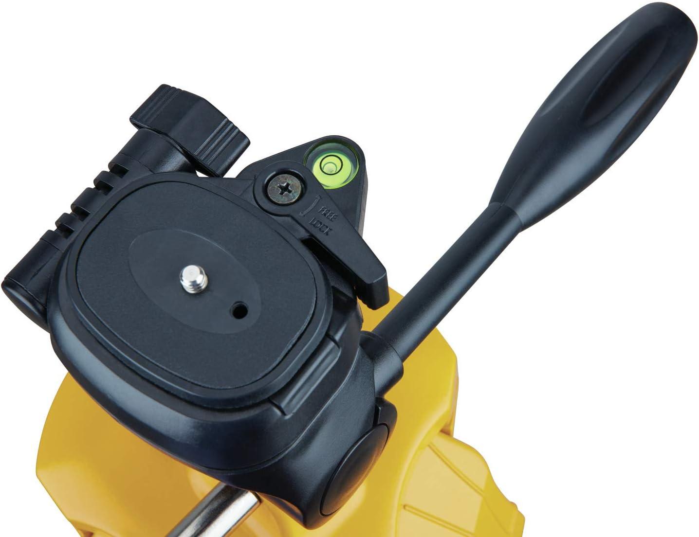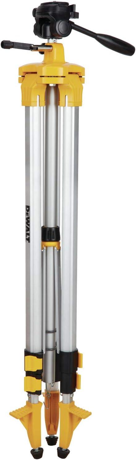 DEWALT DW0733 1/2″ Elevated tripod has pivot adjustable head. 1/4″ X 20 thread. Crank knob for adjustable height. 2 stage telescoping legs.