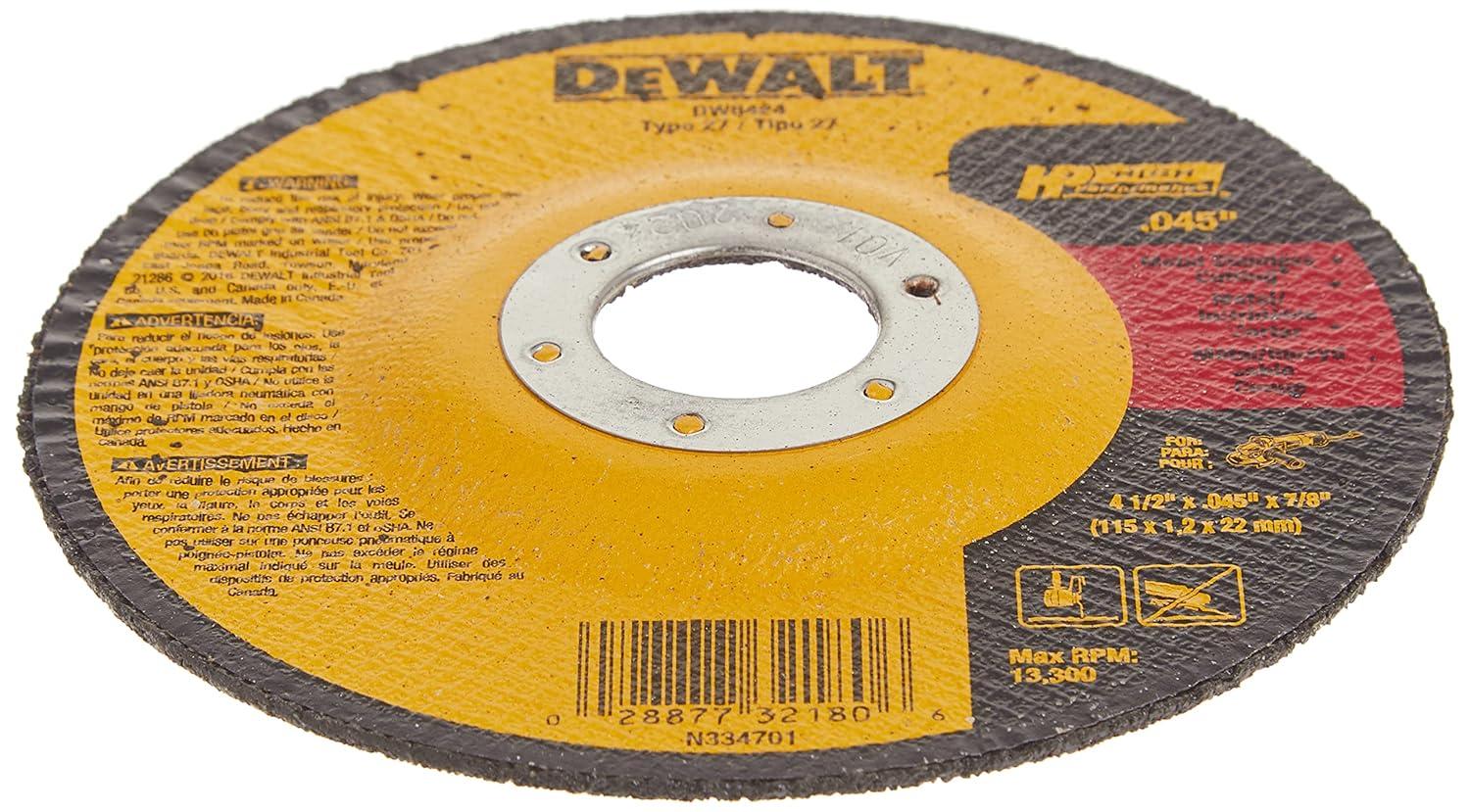 DEWALT DW8424 Thin Cutting Wheel, 4-1/2-Inch x .045-Inch x 7/8-Inch, Pack of 1(1 Count (Pack of 1))