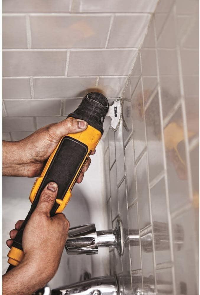 Swing design of DEWALT oscillating tool accessory allows for tight access