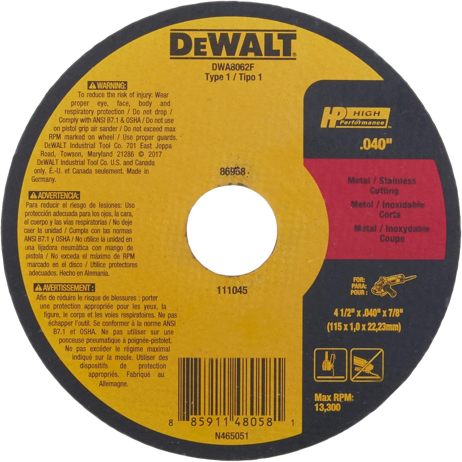 DEWALT DWA8063F T1 HP Fast Cut-Off Wheel, 5″ x 0.040″ x 7/8″(4-1/2″ x 0.040″ x 7/8″)