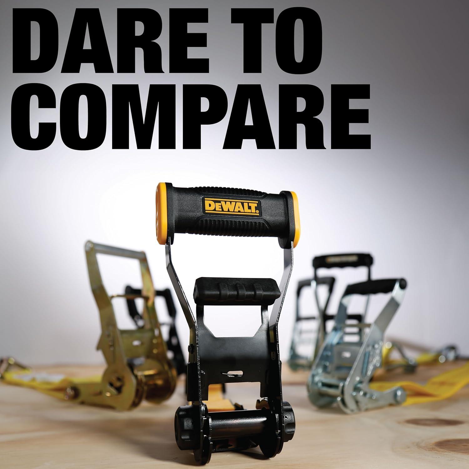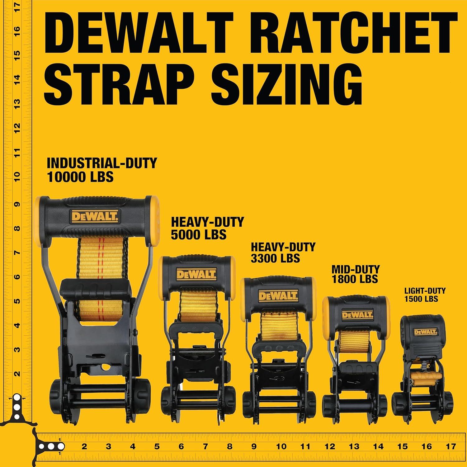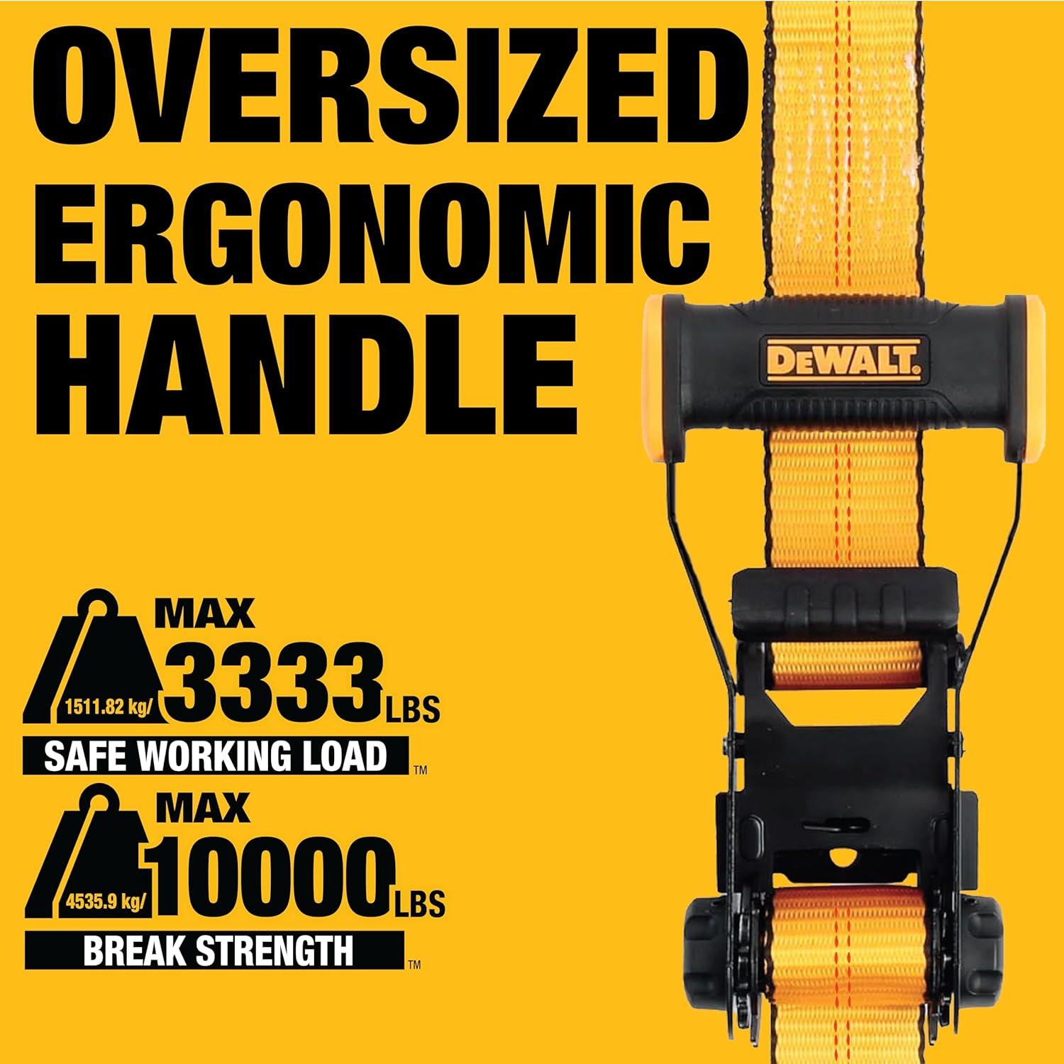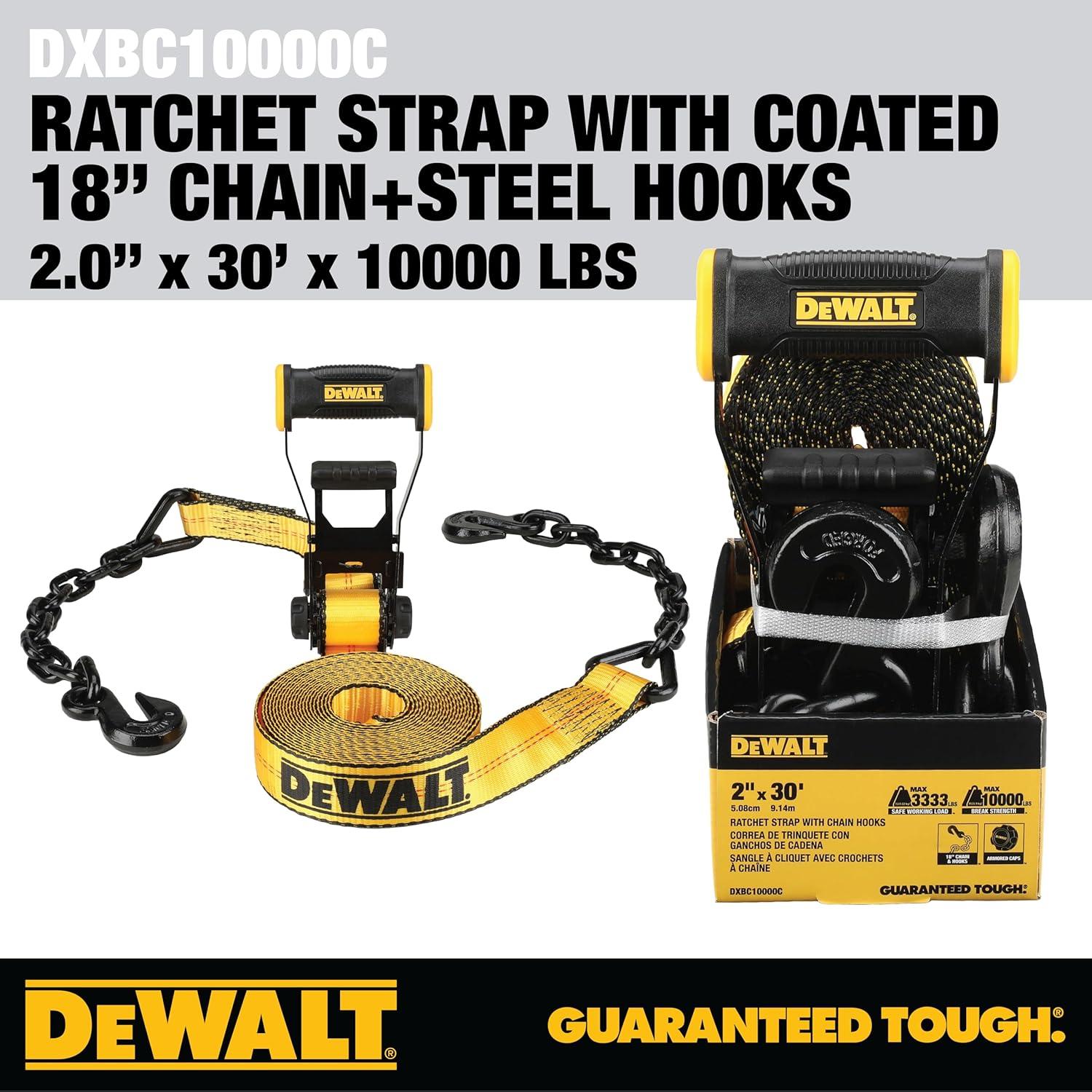 DEWALT DXBC10000F Black/Yellow 2″ x 27′ Ratchet Tie Down Strap with Flat Hook – Heavy-Duty Cargo Securing (10,000 lb Break Strength)(2″ x 30′)