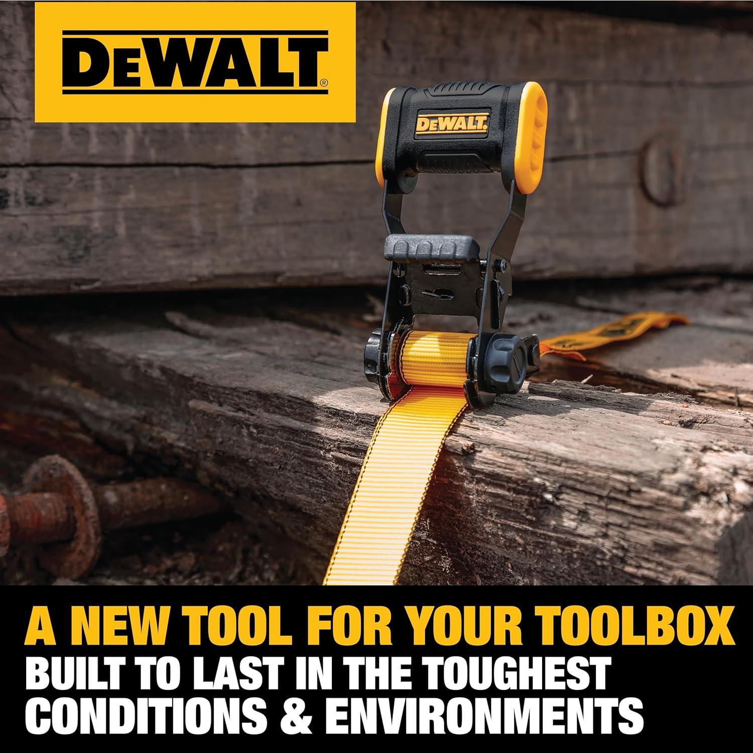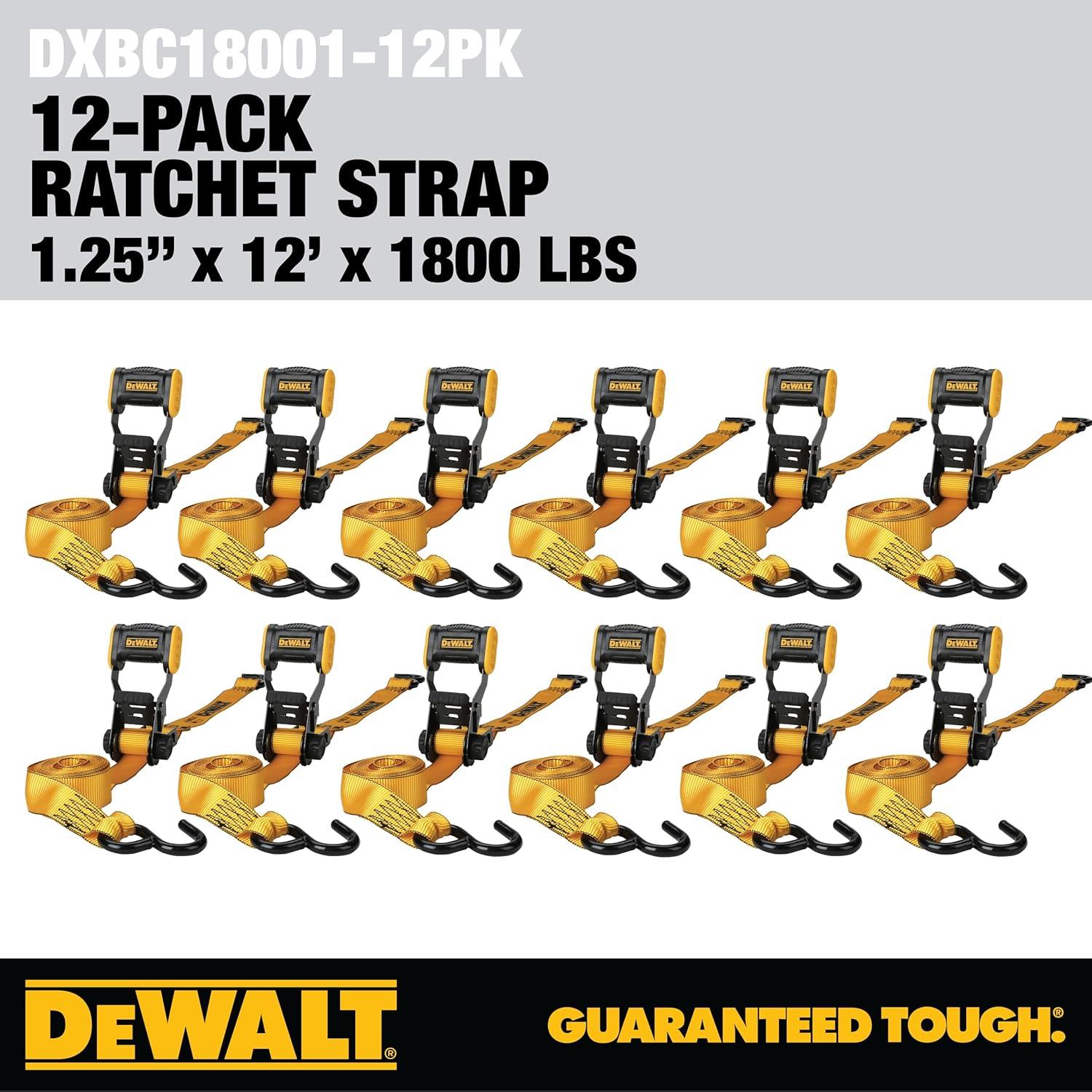DEWALT DXBC18002 Black/Yellow 1.25″ x 12′ Ratchet Tie Down Straps – Light-Weight Cargo Hauling (1800 lb Break Strength), 2 Pack(12 Pack)