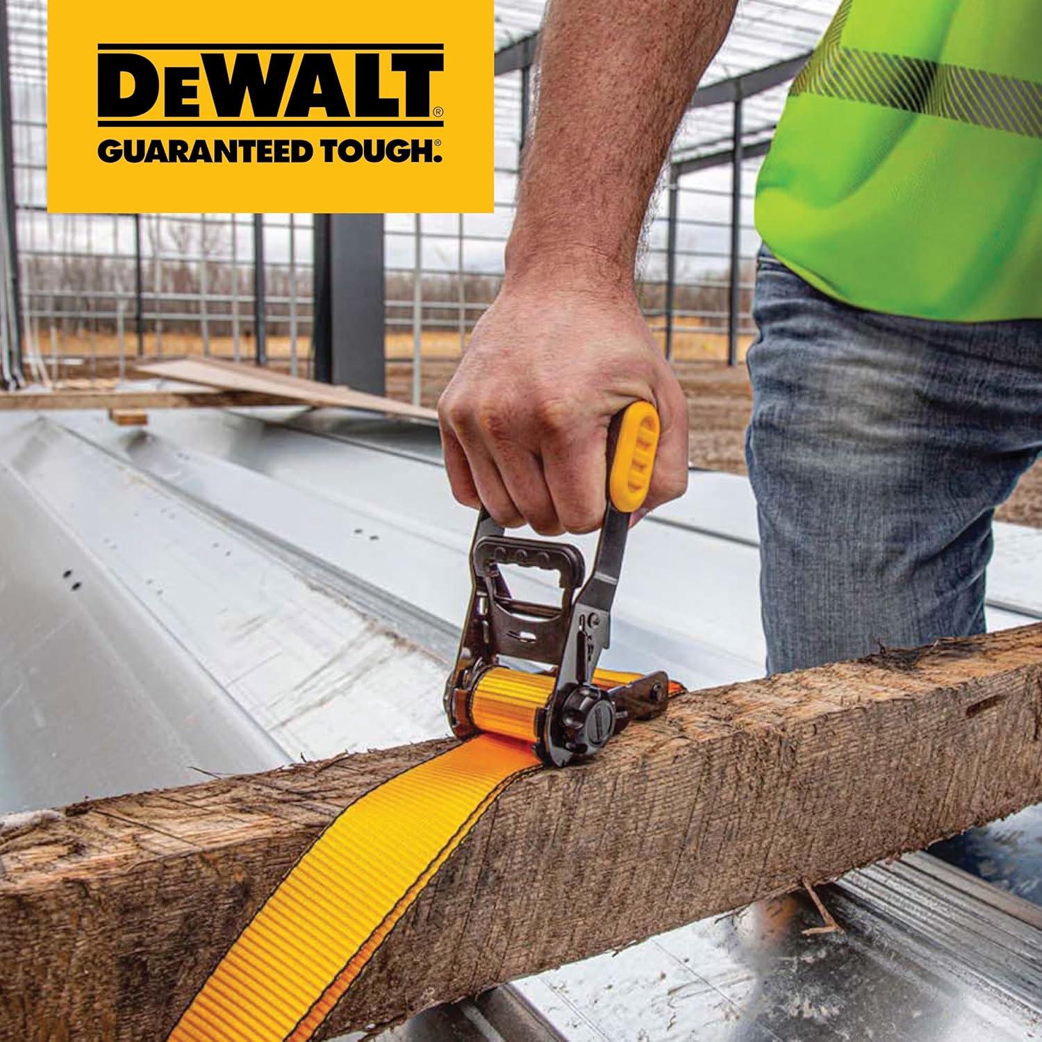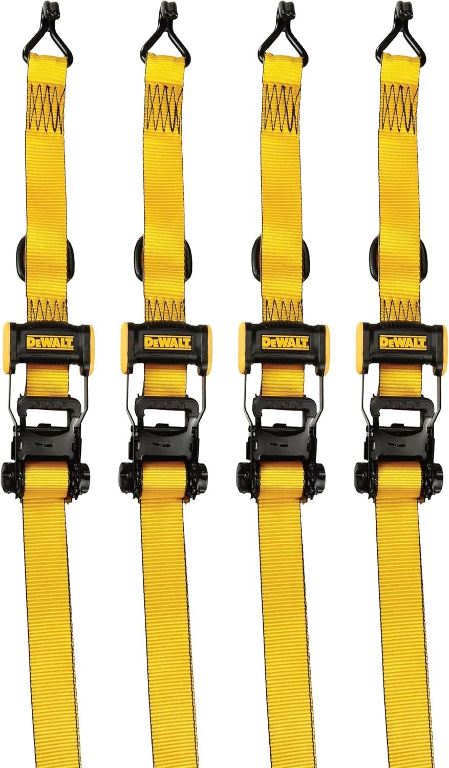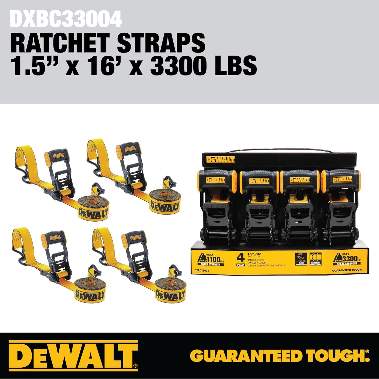 DEWALT DXBC33002 Black/Yellow 1.5″ x 16′ Ratchet Tie Down Straps – Mid-Weight Cargo Hauling (3300 lb Break Strength), 2 Pack(Black Yellow)