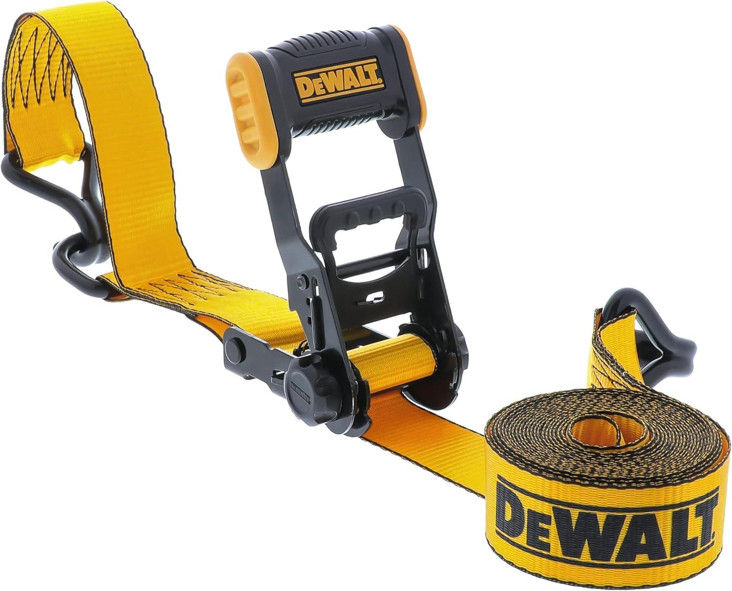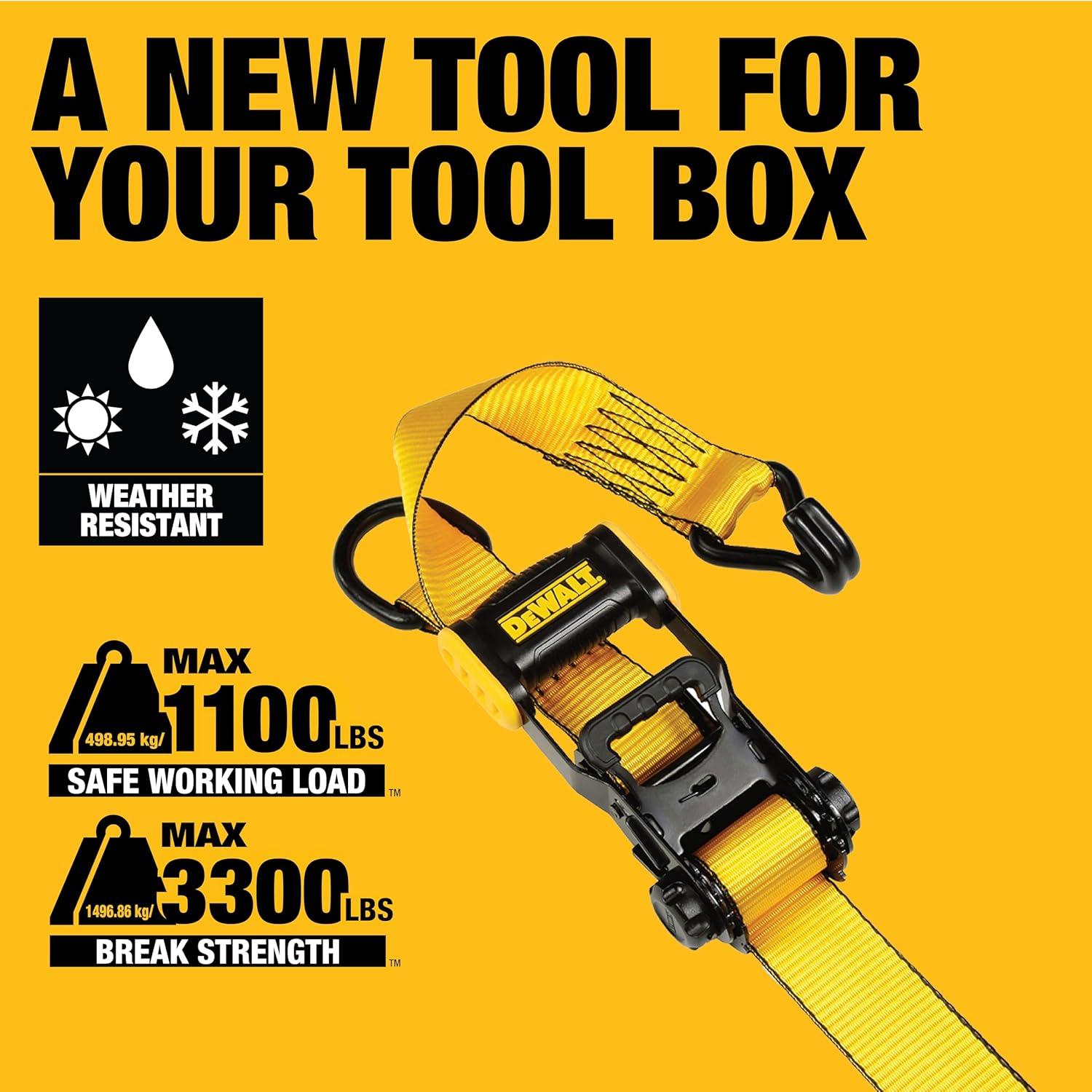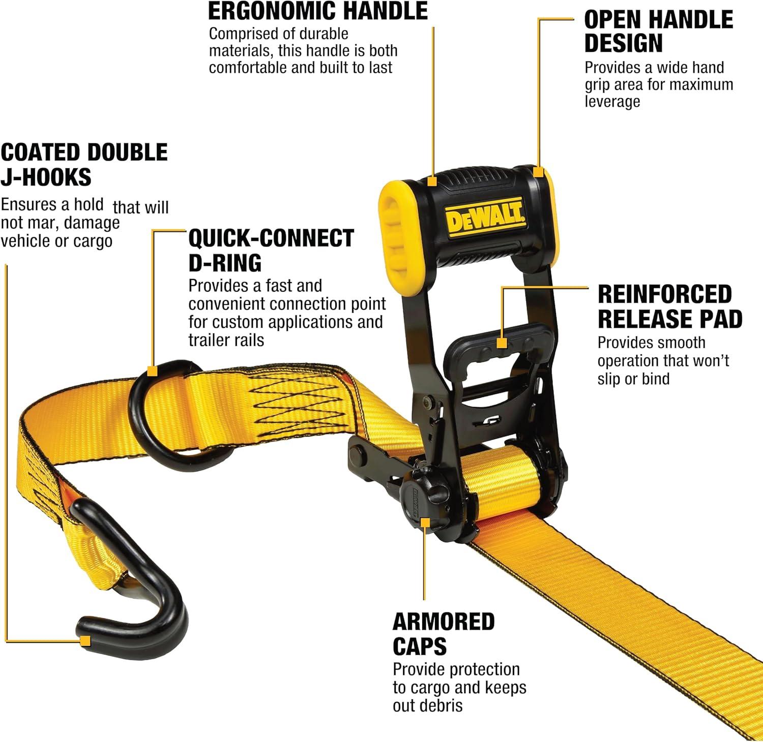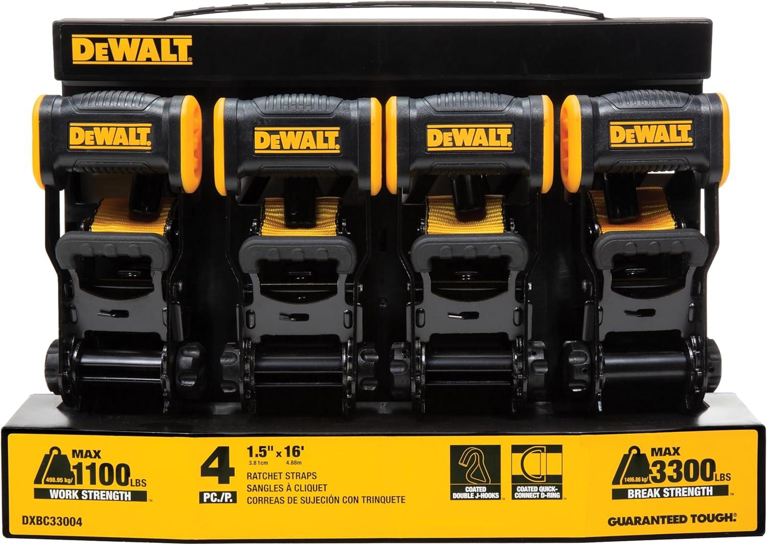 DEWALT DXBC33002 Black/Yellow 1.5″ x 16′ Ratchet Tie Down Straps – Mid-Weight Cargo Hauling (3300 lb Break Strength), 2 Pack(Black Yellow)