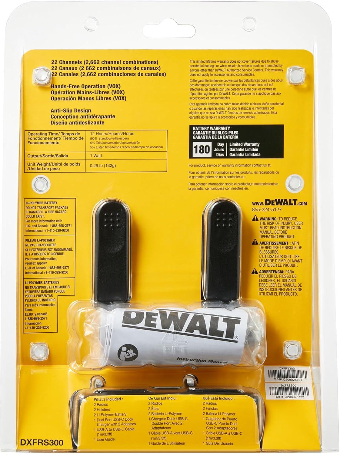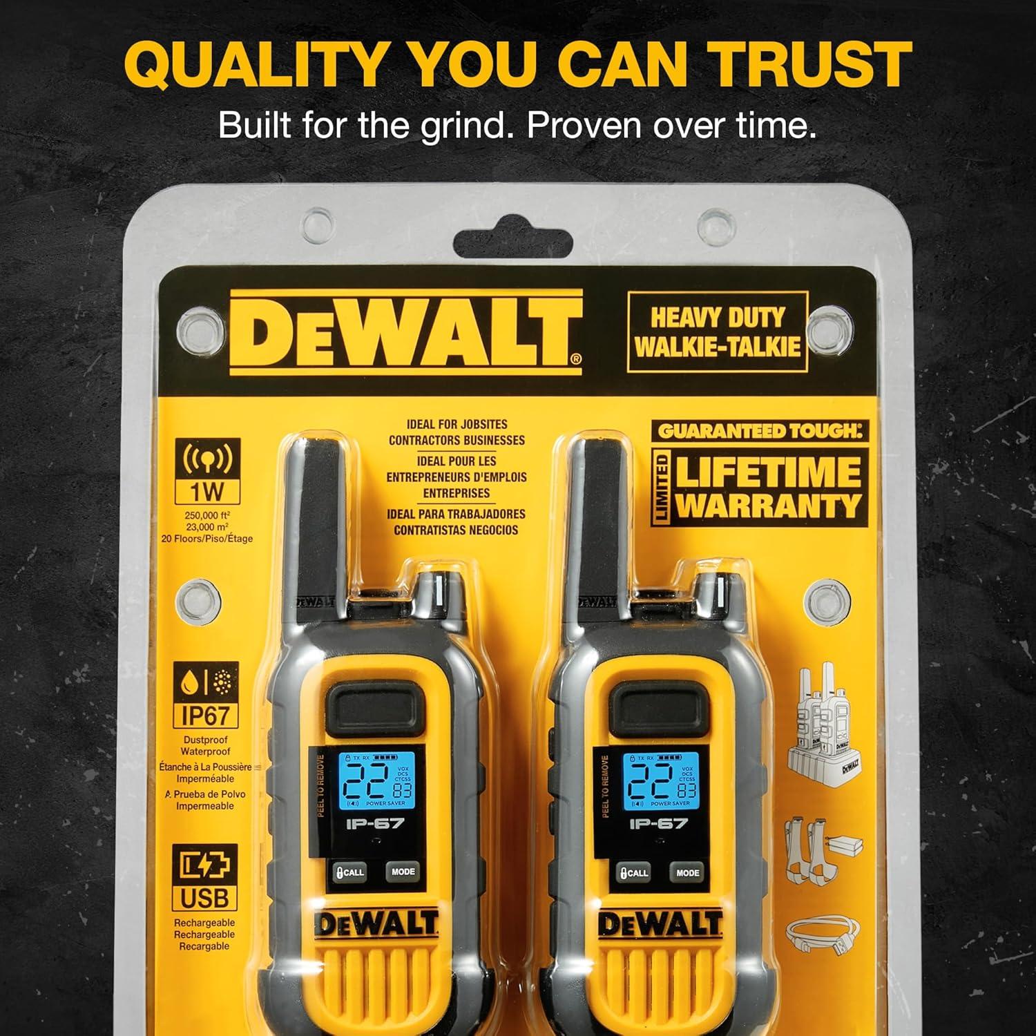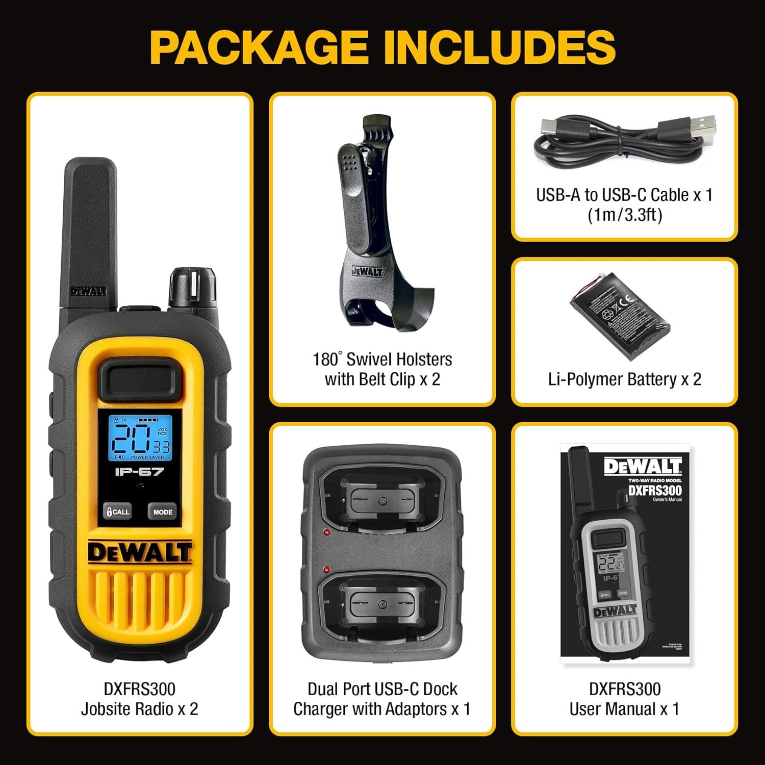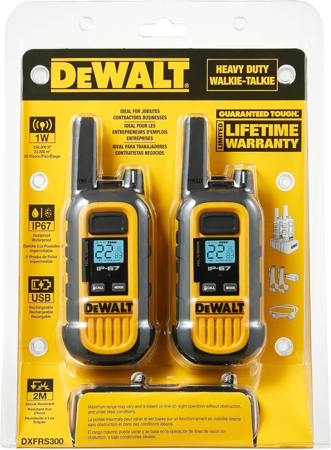 DEWALT DXFRS300 FRS Walkie Talkies Long Range 2 Way Radio, 1 Watt, Waterproof & Rechargeable, 2 Pack(2 Pack)