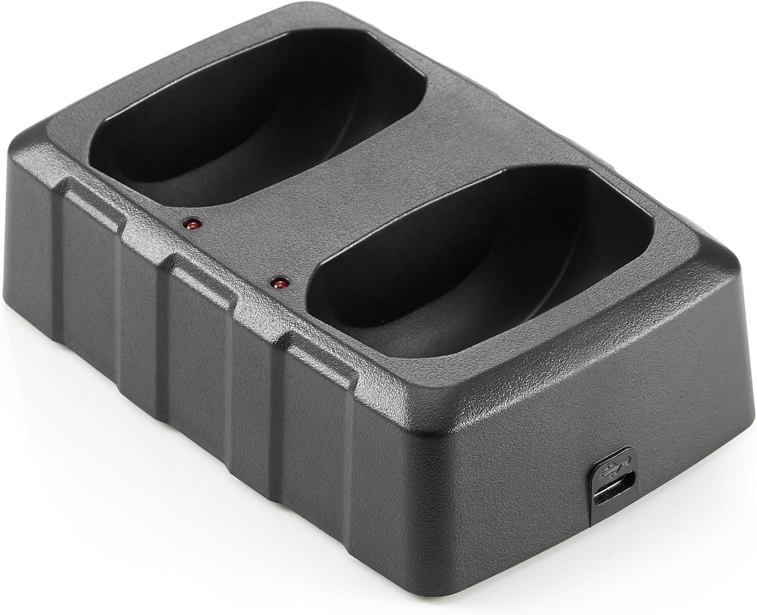 In the Box: 2x DXFRS300 Walkie Talkie Two Way Radios, 2x Li-Polymer Batteries, 2x Holsters, 1x Dual Port Micro-USB Charger with 2 Dock Adapters, 1x AC Adapter, User Guide