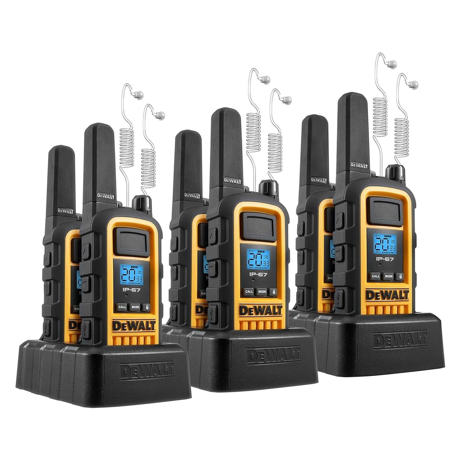 DEWALT DXFRS800 FRS Walkie Talkies Long Range 2 Way Radio, 2 Watt, Waterproof & Rechargeable, 2 Pack(with Headsets)
