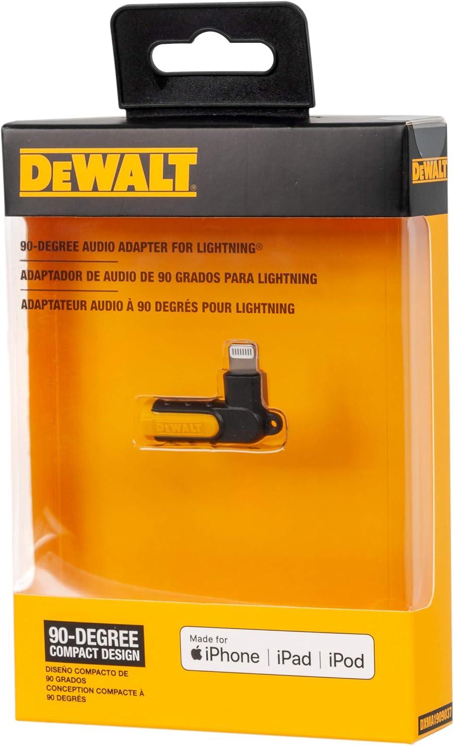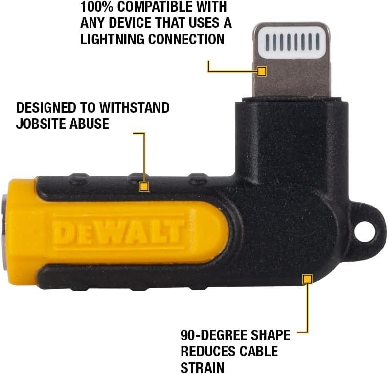 DEWALT Heavy Duty 3.5mm to Lightning Adapter, 90Degree L Connector Female to 3.5mm Male Headphone Jack Adapter for iPhone, Compatible Lightning to 3.5 mm Headphone Jack Adapters, Adapts Legacy Devices