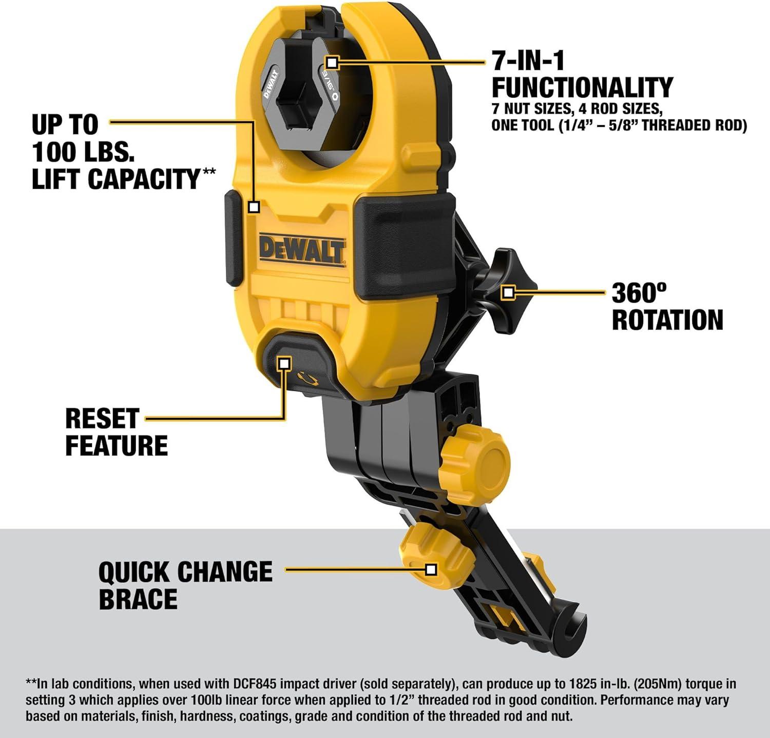 Application versatility – take on a wide range of applications with 7 compatible nut sizes and 4 compatible rod sizes including 3/8 in. standard and heavy, 1/2 in. standard and heavy, 1/4 in. standard and heavy, and 5/8 in. standard (1/4 in. and 5/8 in. sizes sold separately).