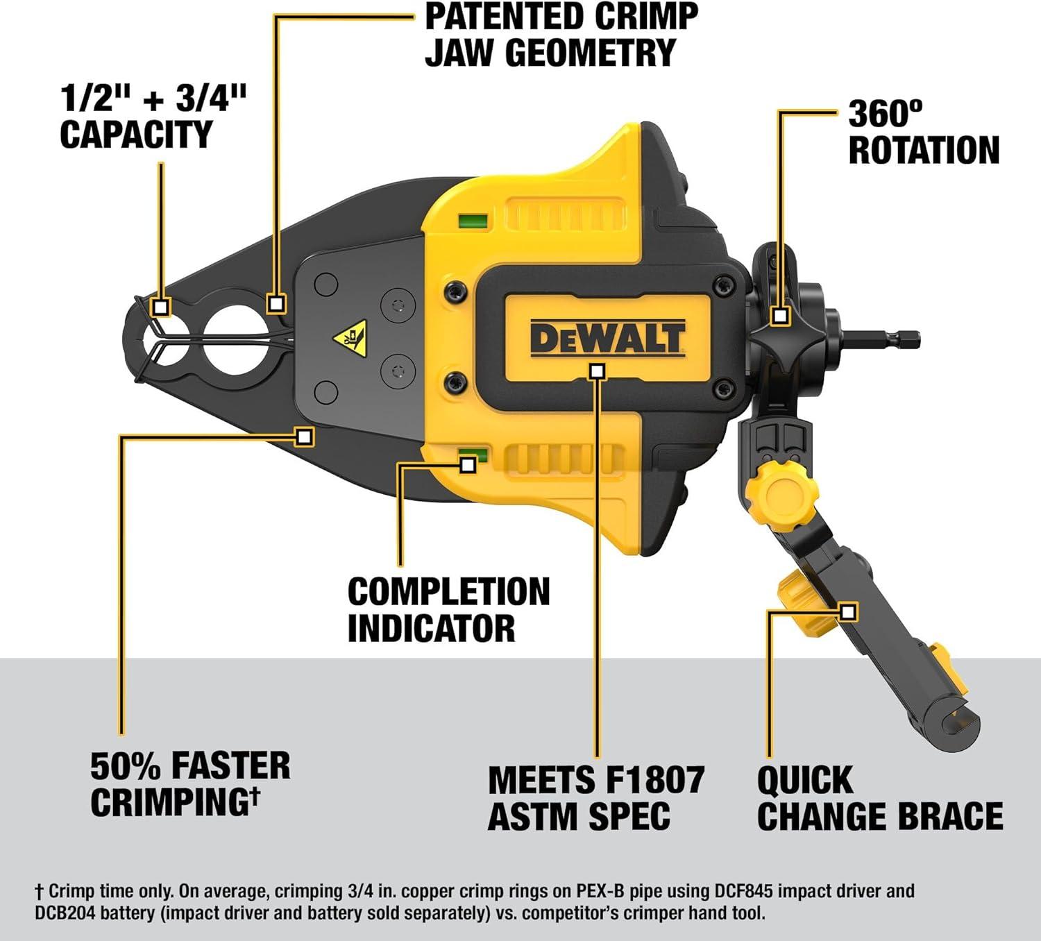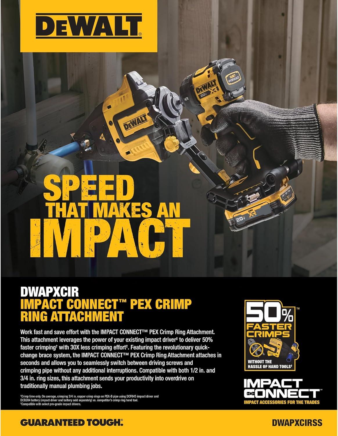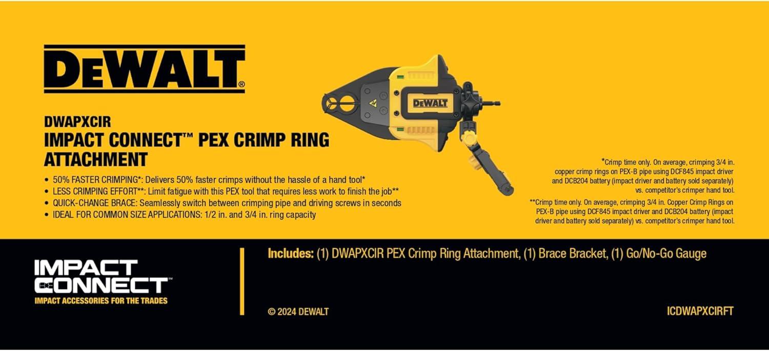DEWALT IMPACT CONNECT PEX Crimp Ring Attachment for Impact Driver, Plumbing Tool (DWAPXCIR)