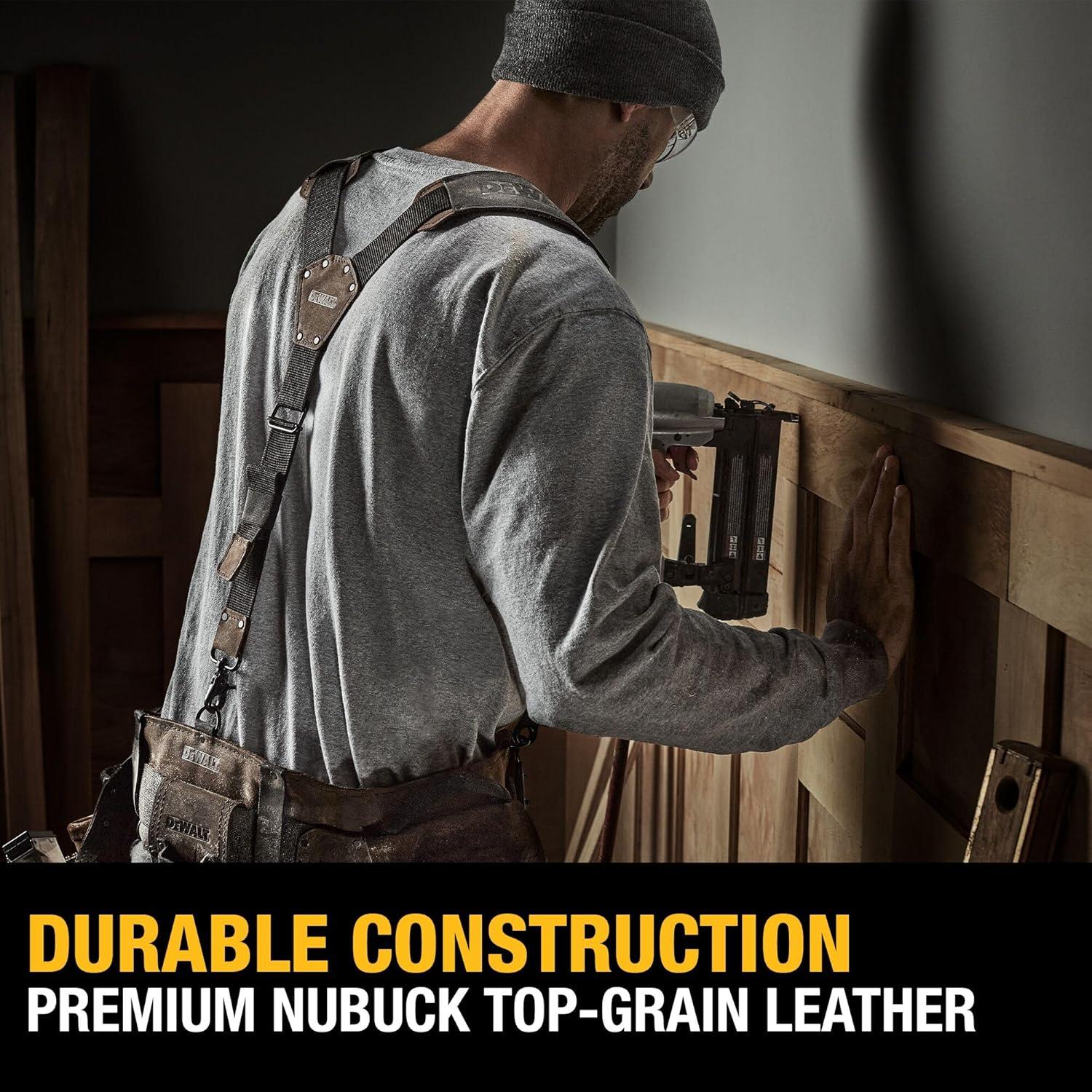 DEWALT Leather Tool Belt Suspenders, Y Back Design Adjustable, Heavy Duty Construction (DWST550116)