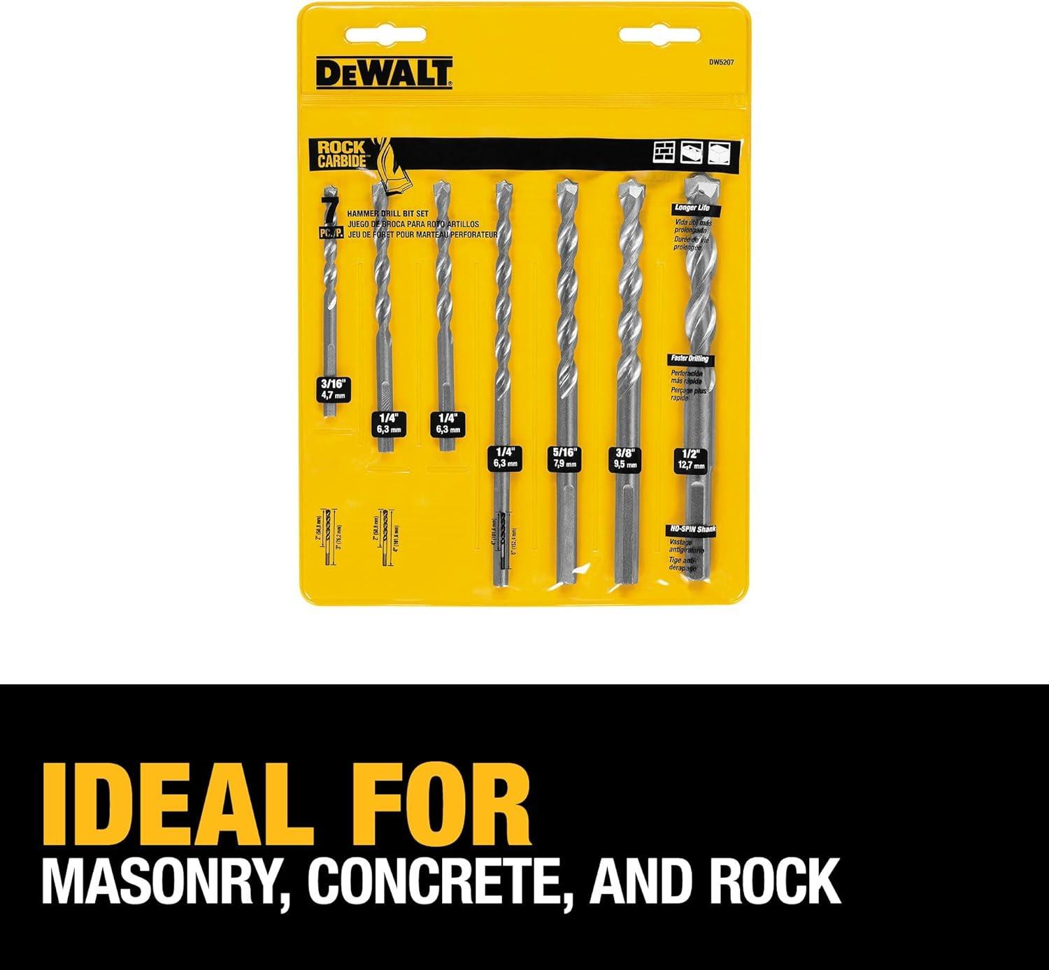 DEWALT Masonry Drill Bit Set, Percussion, Concrete & Block, 7-Piece (DW5207)
