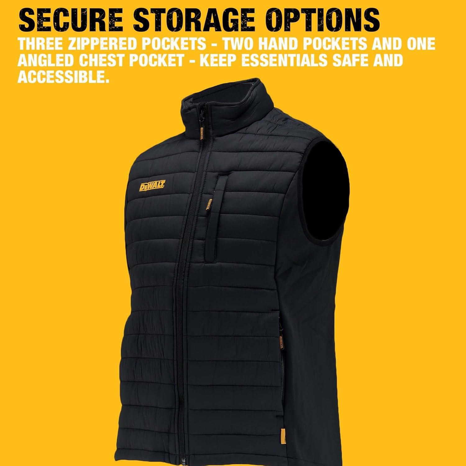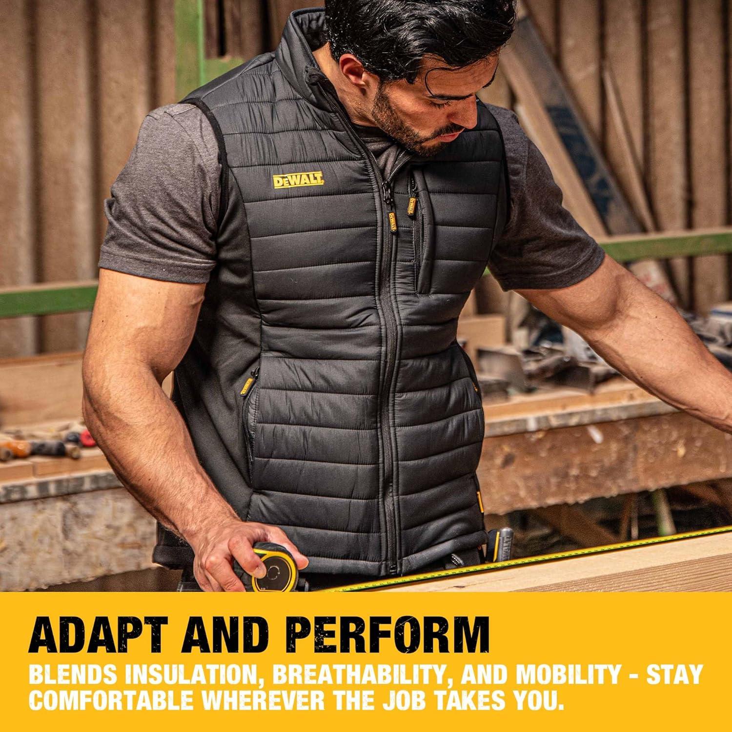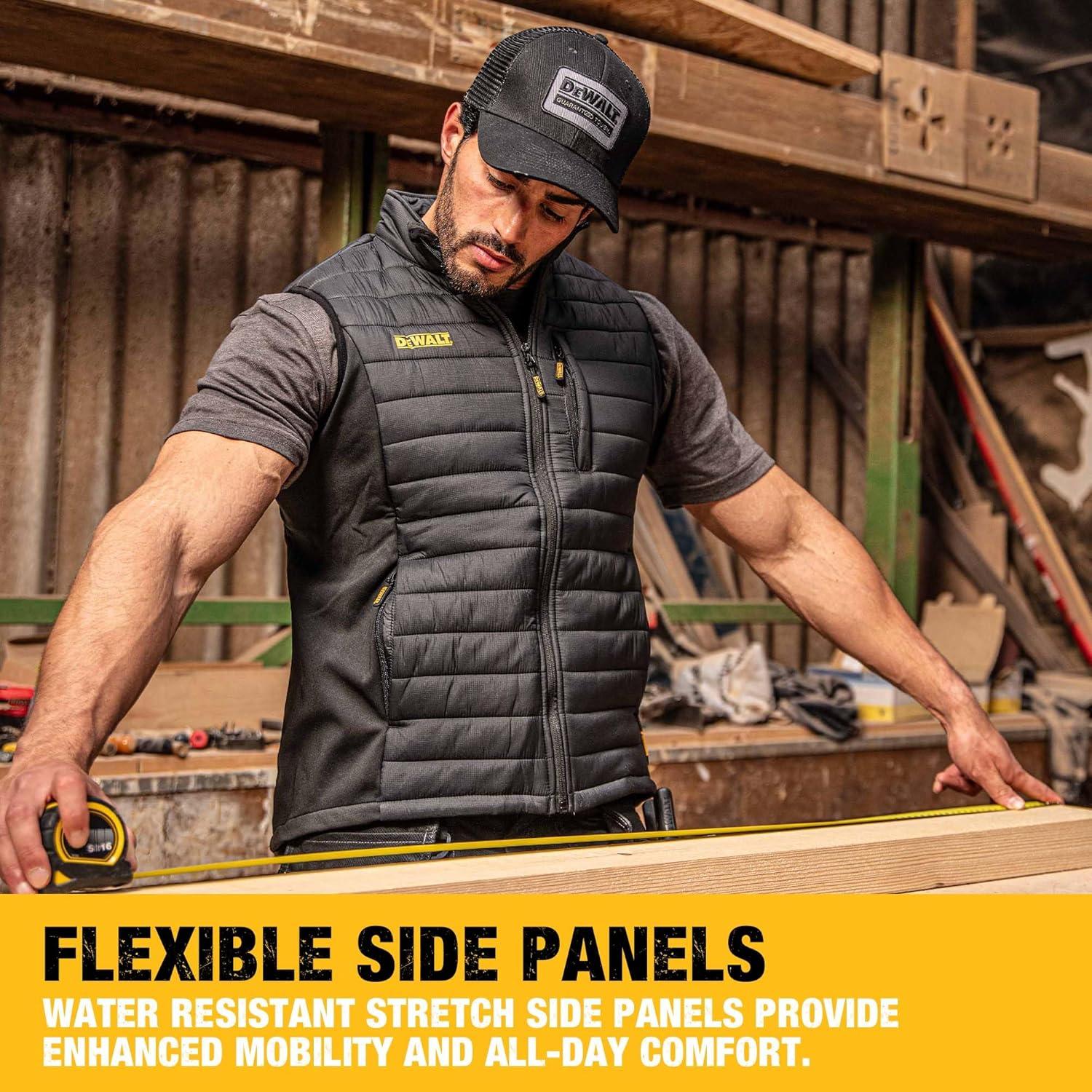 DEWALT Men’s Hybrid, Polyester with Stretch, Insulated, Regular Fit Work Vest(Black)