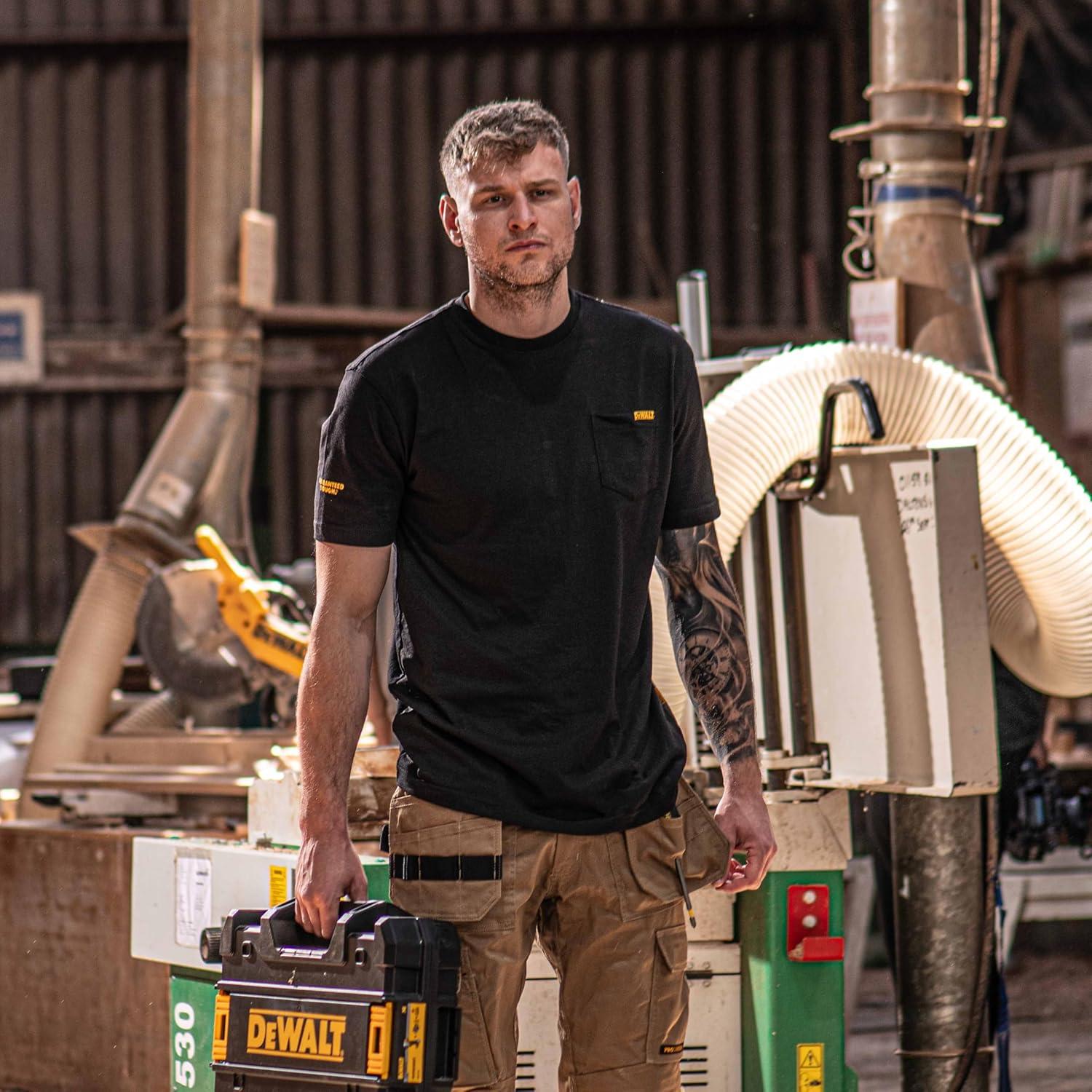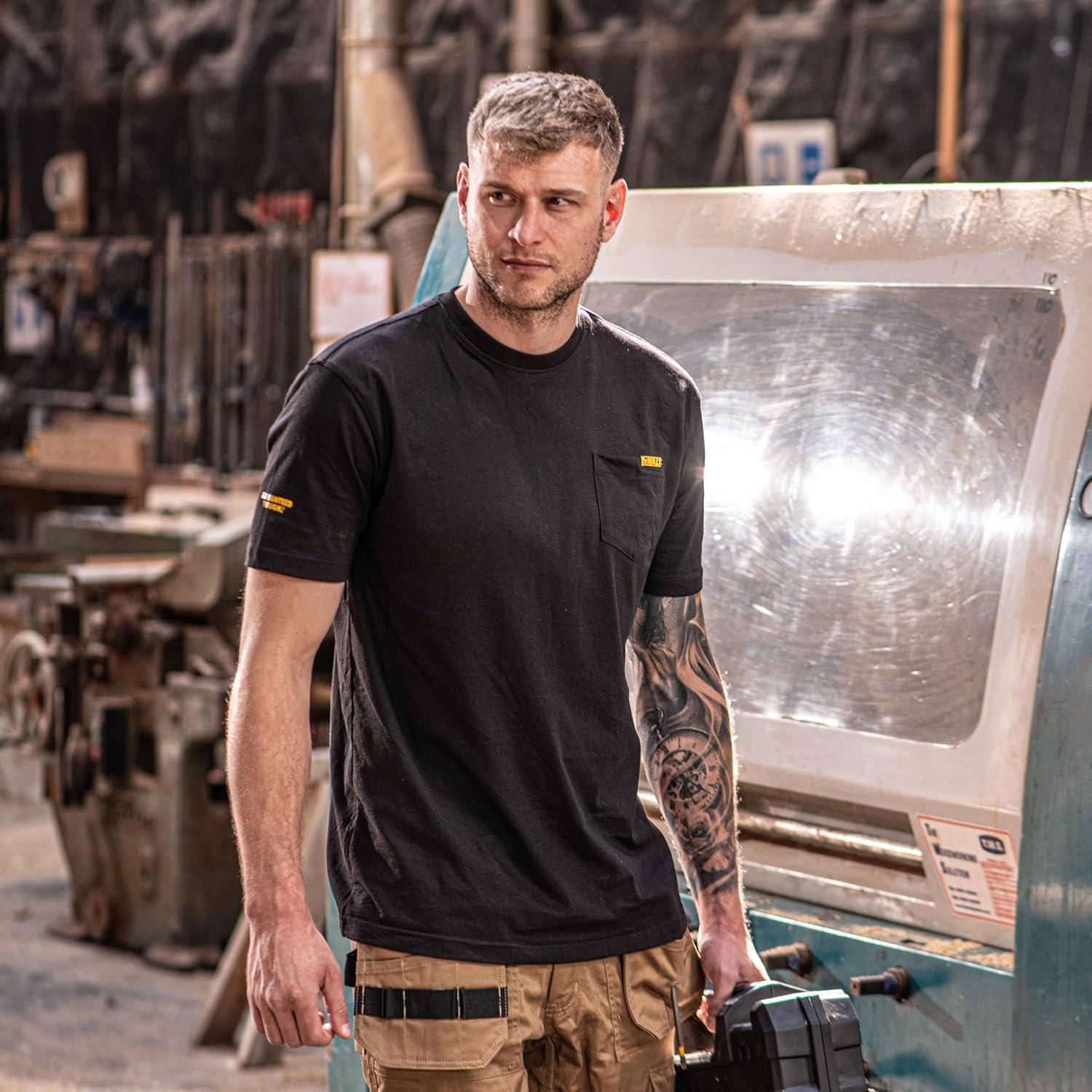 The pocket t-shirt is in the DEWALT Heritage range, which targets classic style through a workwear lens, staying true to the brands roots. Made with 60% cotton and 40% polyester, our DEWALT Men's pocket t-shirt has the comfort and flexibility for work and everyday wear.