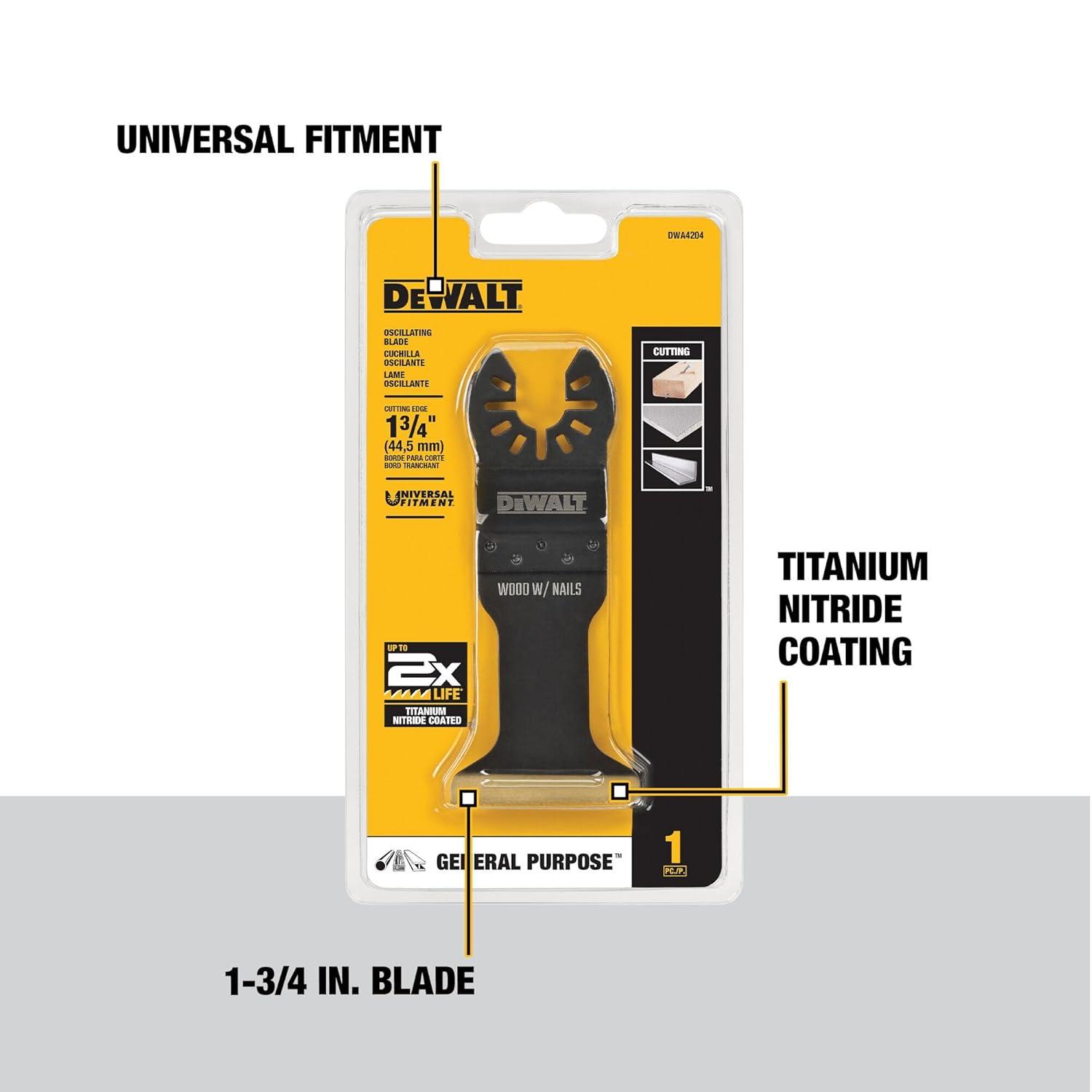 DEWALT Oscillating Tool Blade for Wood with Nails, Wide, Titanium Nitride Coated (DWA4204), Black(One Size)