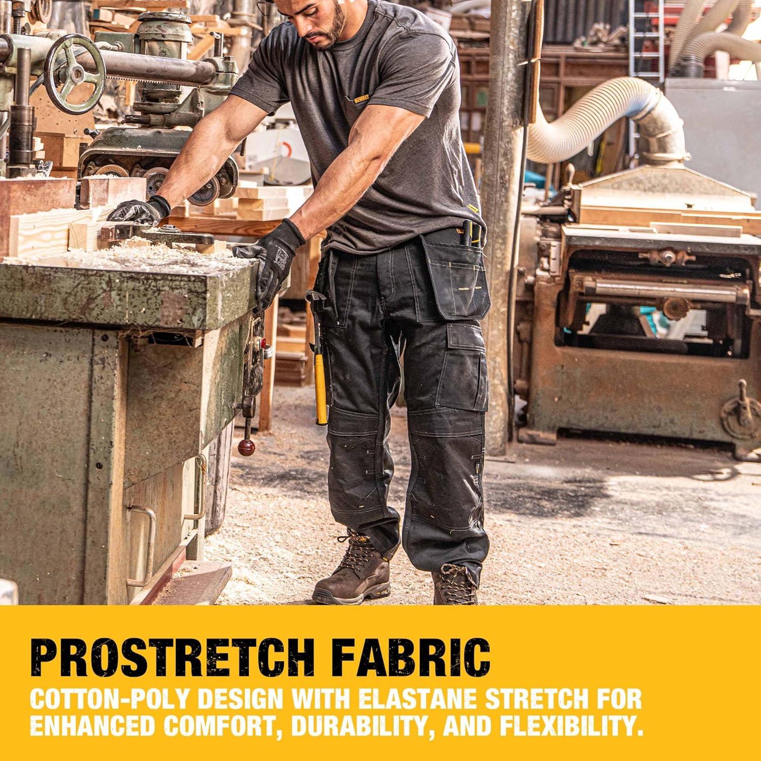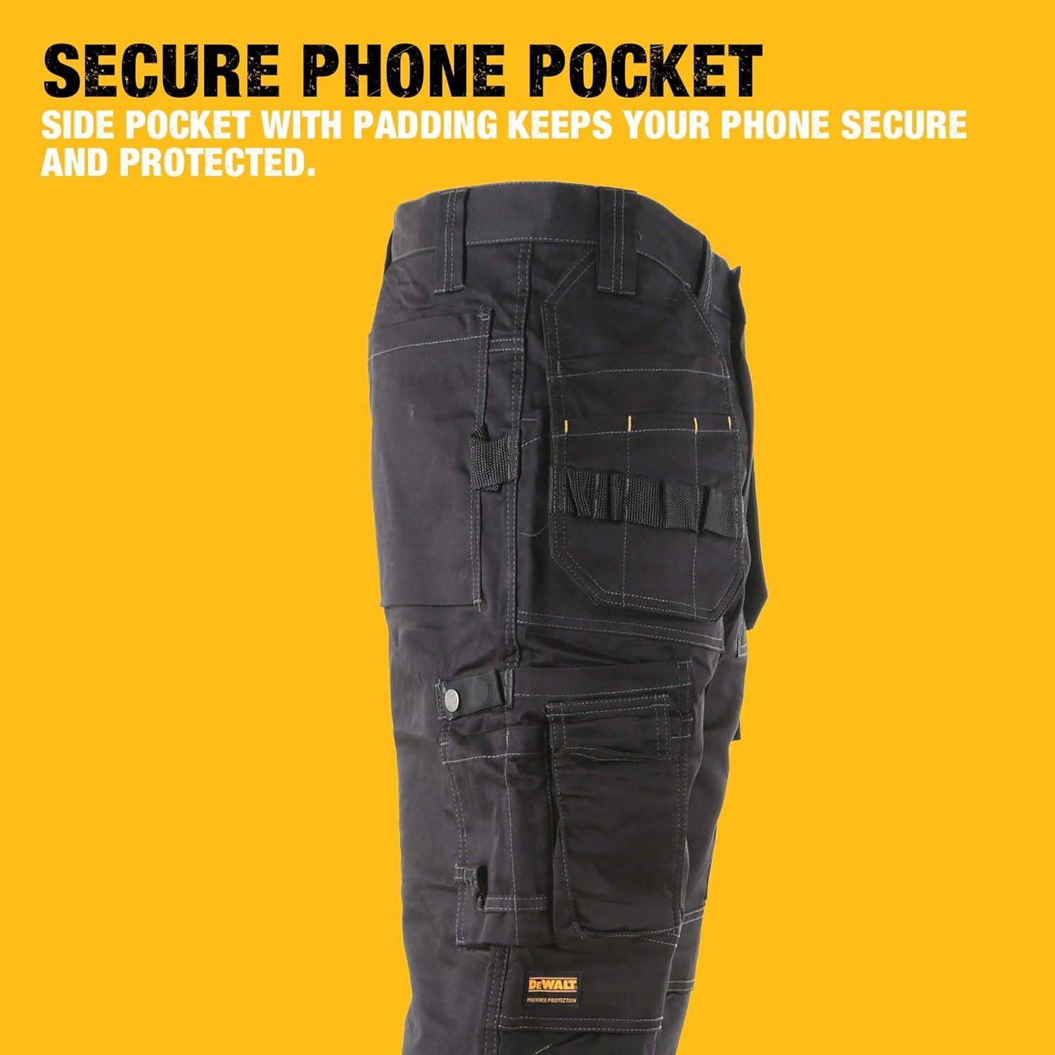 DEWALT Protradesman Men’s Loose Fit, Holster Pocket, Cottonpoly Stretch Work Pants(Black)