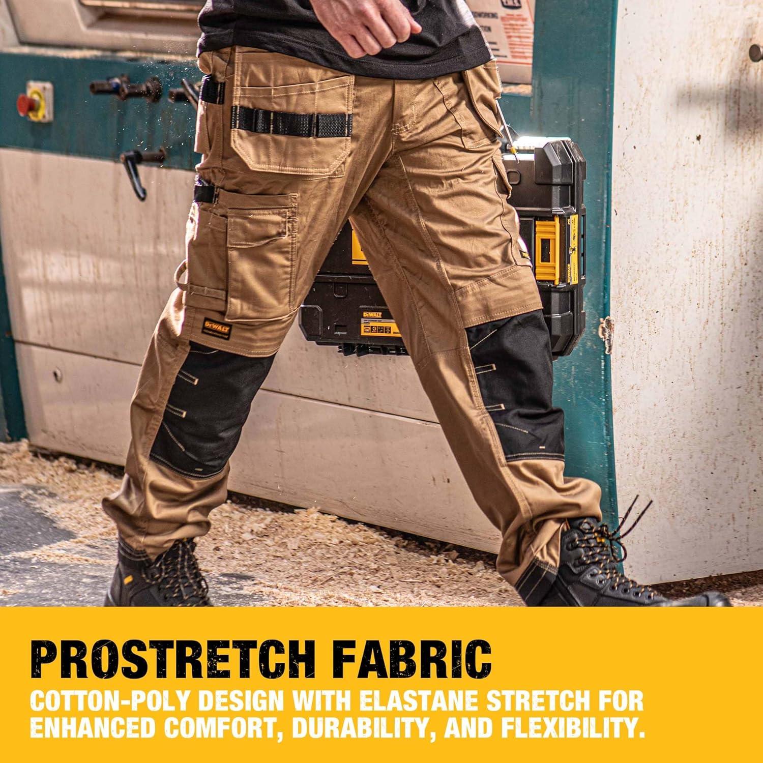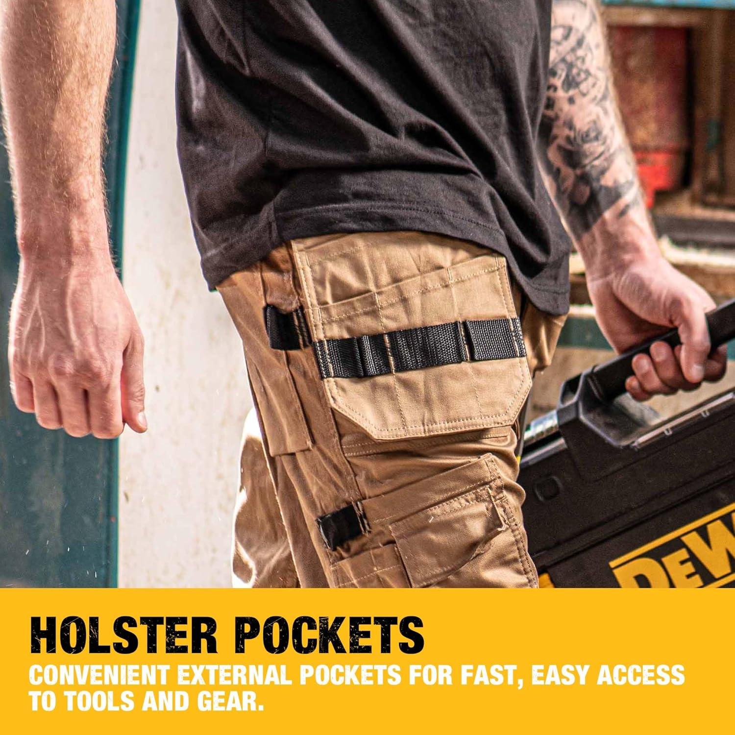 DEWALT Protradesman Men’s Loose Fit, Holster Pocket, Cottonpoly Stretch Work Pants(Tan)