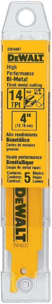 DEWALT Reciprocating Saw Blades, Straight Back, 4-Inch, 14 TPI, 5-Pack (DW4807)