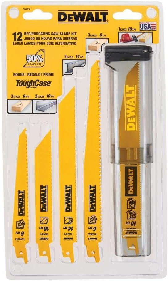 DEWALT Reciprocating Saw Blades, Straight Back, 6-Inch, 10 TPI, 5-Pack (DW4806) , Yellow(12-piece Set)