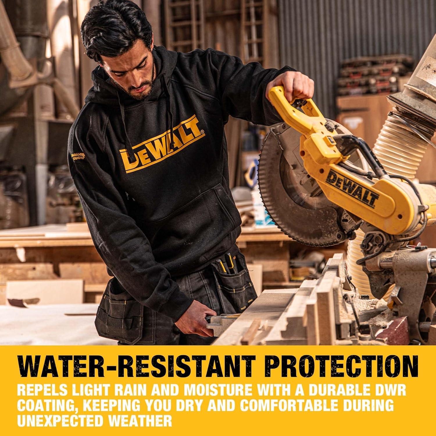 DEWALT Rexburg Men’s Water Resistant, Cottonpoly, Heavy Duty, Work Hoodie(Black)