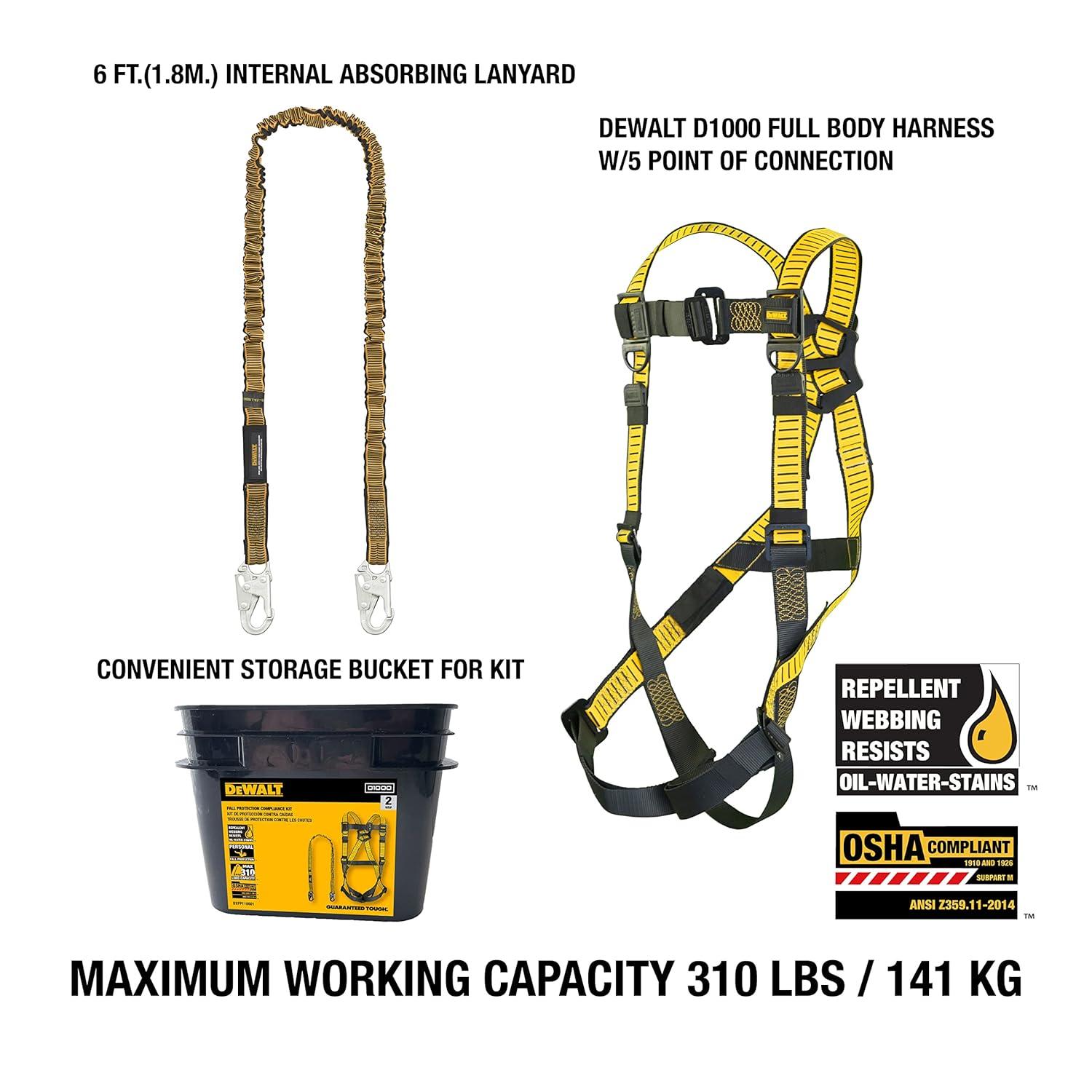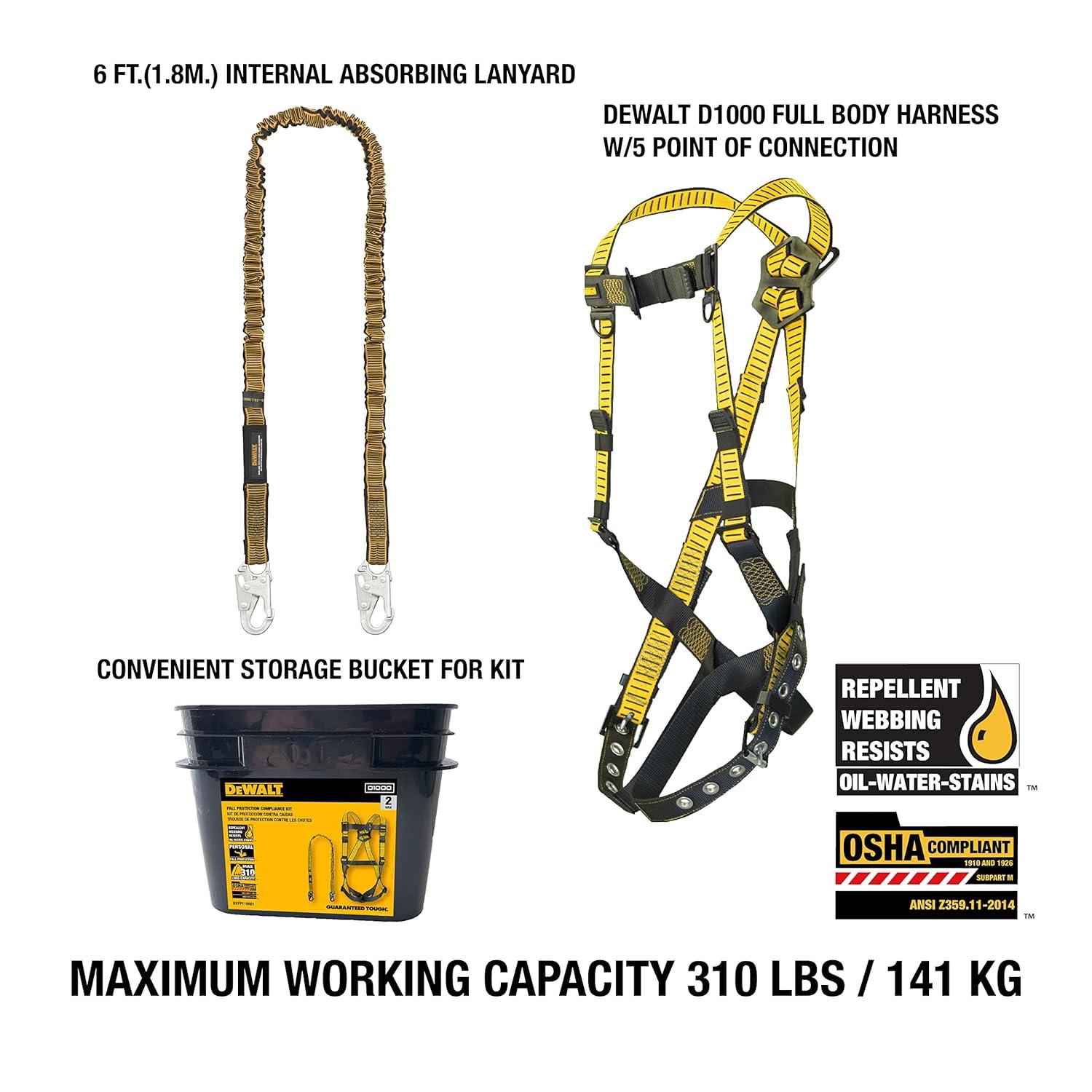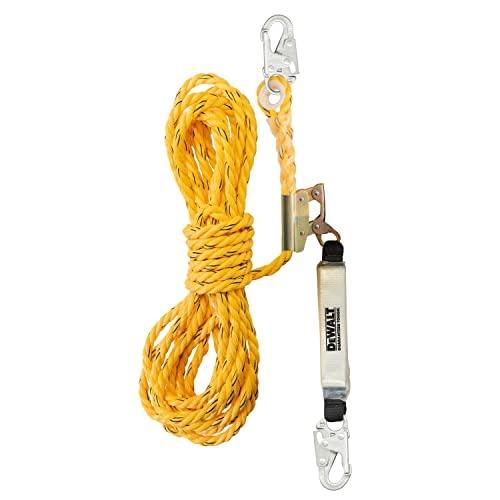 DEWALT Rooftop safety kit with D1000 harness with Pass-Thru Chest and Tongue Buckle Legs, 50′ vertical lifeline w/rope adjustor and reusable rooftop anchor(One Size)