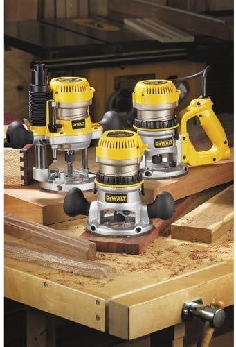The DW618PKB 2-1/4 HP EVS Fixed Base / Plunge Router Combo Kit w/ Soft Start has a powerful motor for routing through tough hardwood at the user's desired speed. DEWALT fixed router features precise depth adjustments and fast, easy motor pack removal for bit and base changes. The plunge base integral dust collection provides superior bit visibility.