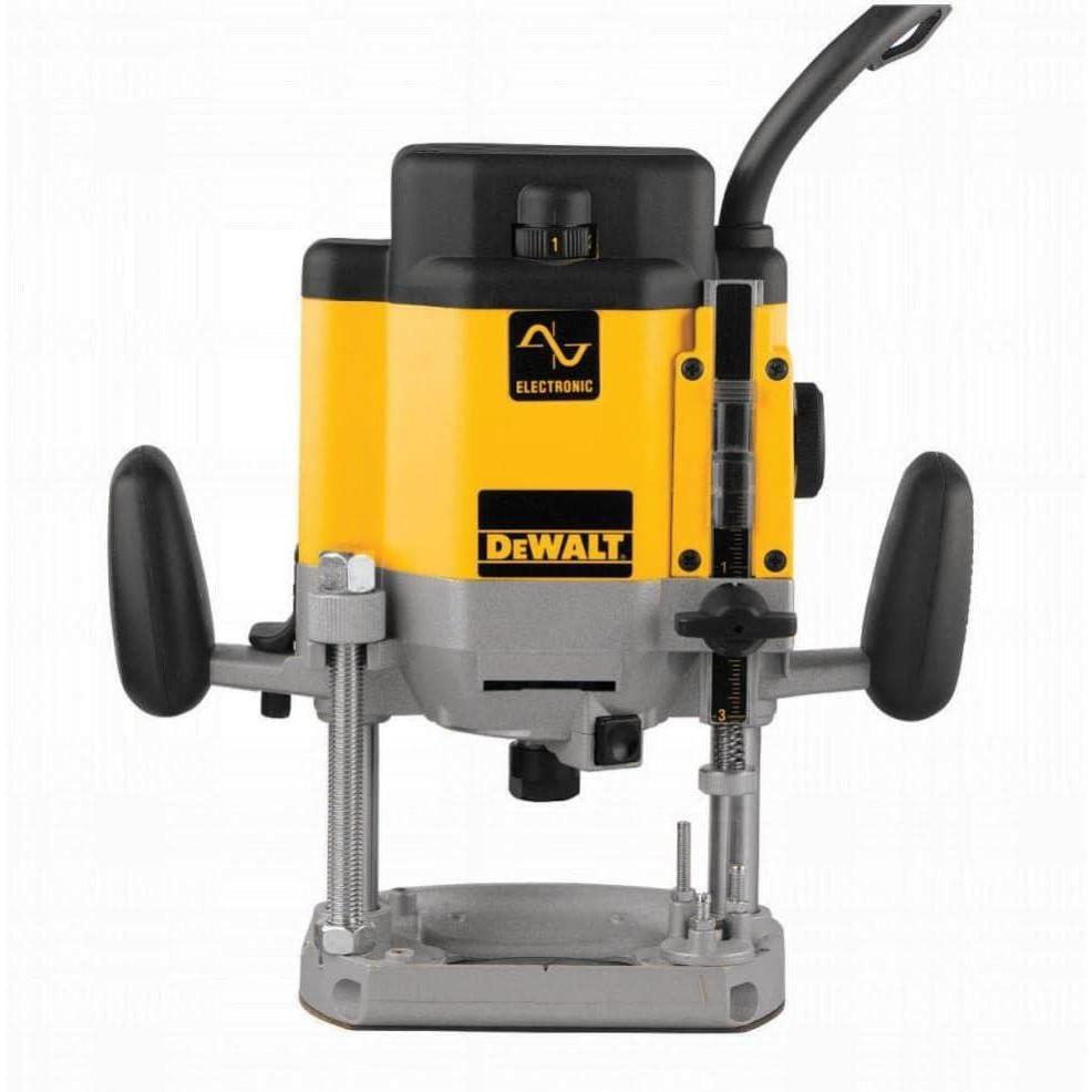 Offering excellent professional grade quality and comfortable handling, the DEWALT DW625 variable speed electronic plunge router is powered by a 3 horsepower, 15 amp motor for power and precision. It offers a soft start for smoother operation and variable speeds from 8,000 to 22,000 RPM.